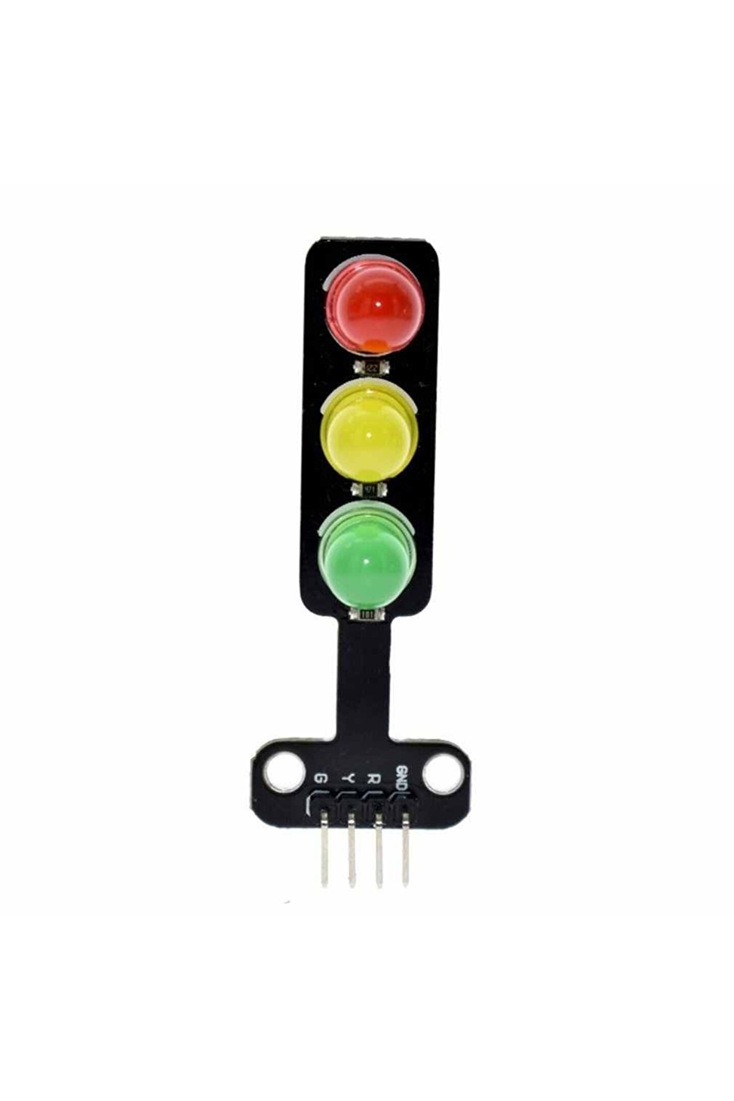 5V Trafik Işıkları LED Display Modülü Bu bir mini trafik lambası modülüdür. Yüksek parlaklık ve kompakt tasarımı ile trafik lamba sistemi için uygun bir Arduino modülüdür. 3 adet pini ve bir ground pini bulunmaktadır. Her ışığın pinine 5V vererek ledleri sıra ile yakabilirsiniz. Trafik Lambası Modülü Teknik Özellikleri Boyut: 56*21*11mm; Renkler:Kırmızı,Sarı, Yeşil; LED: 5mm; Voltaj: 5V; Ortak katot,her led için ayrı pin; Çalışma Akımı: Kırmızı 13mA, Sarı 13mA, Yeşil 25mA;