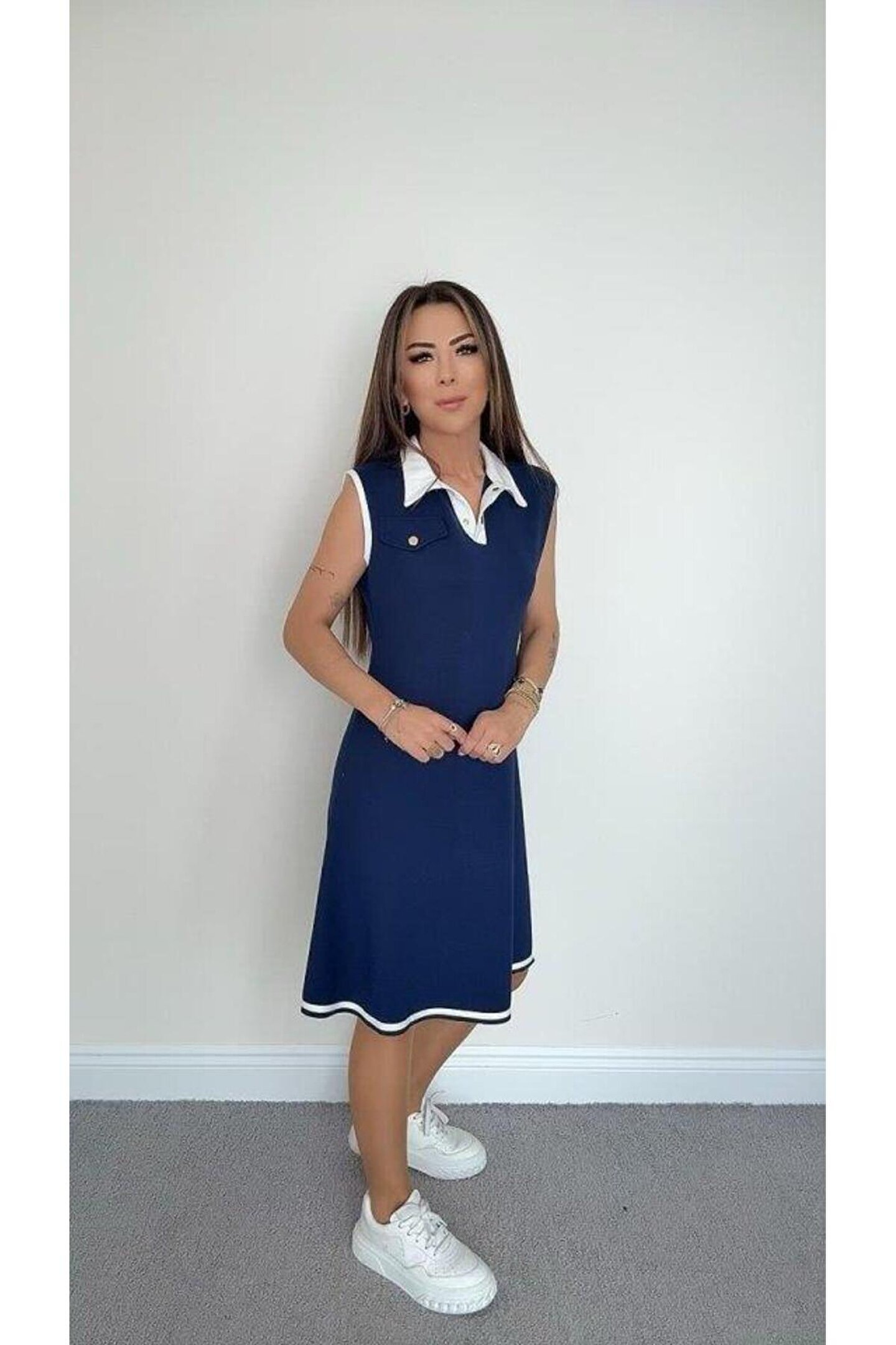 S beden 38-40 bedene, M beden 42 bedene, L beden 44 bedene, XL beden 46 bedene kadar uyumludur.; ; SIFIR KOL POLO YAKA MODAL ELBİSE OMUZDAN AŞAĞI 95 CM Ürünümüz likralıdır.