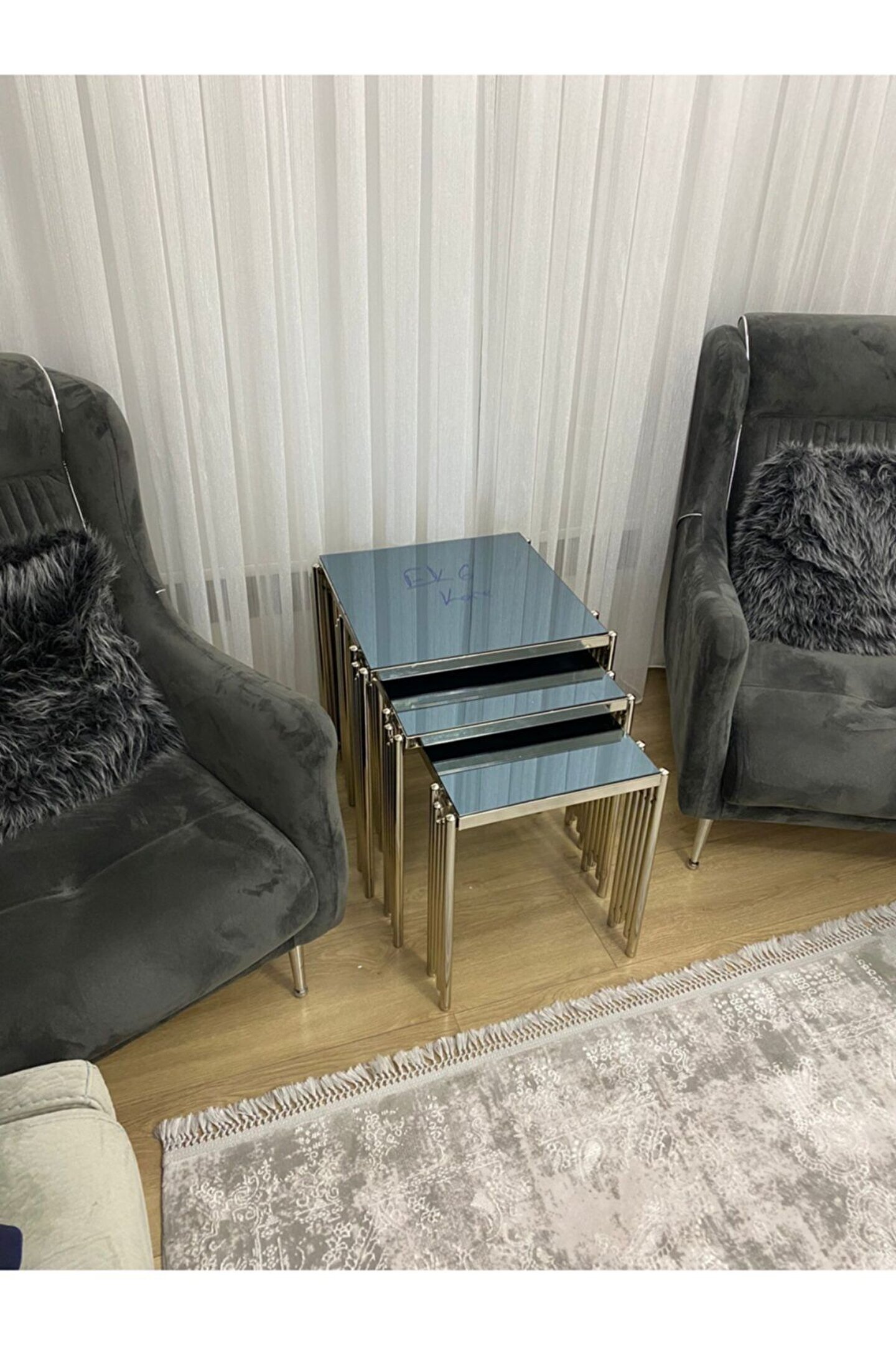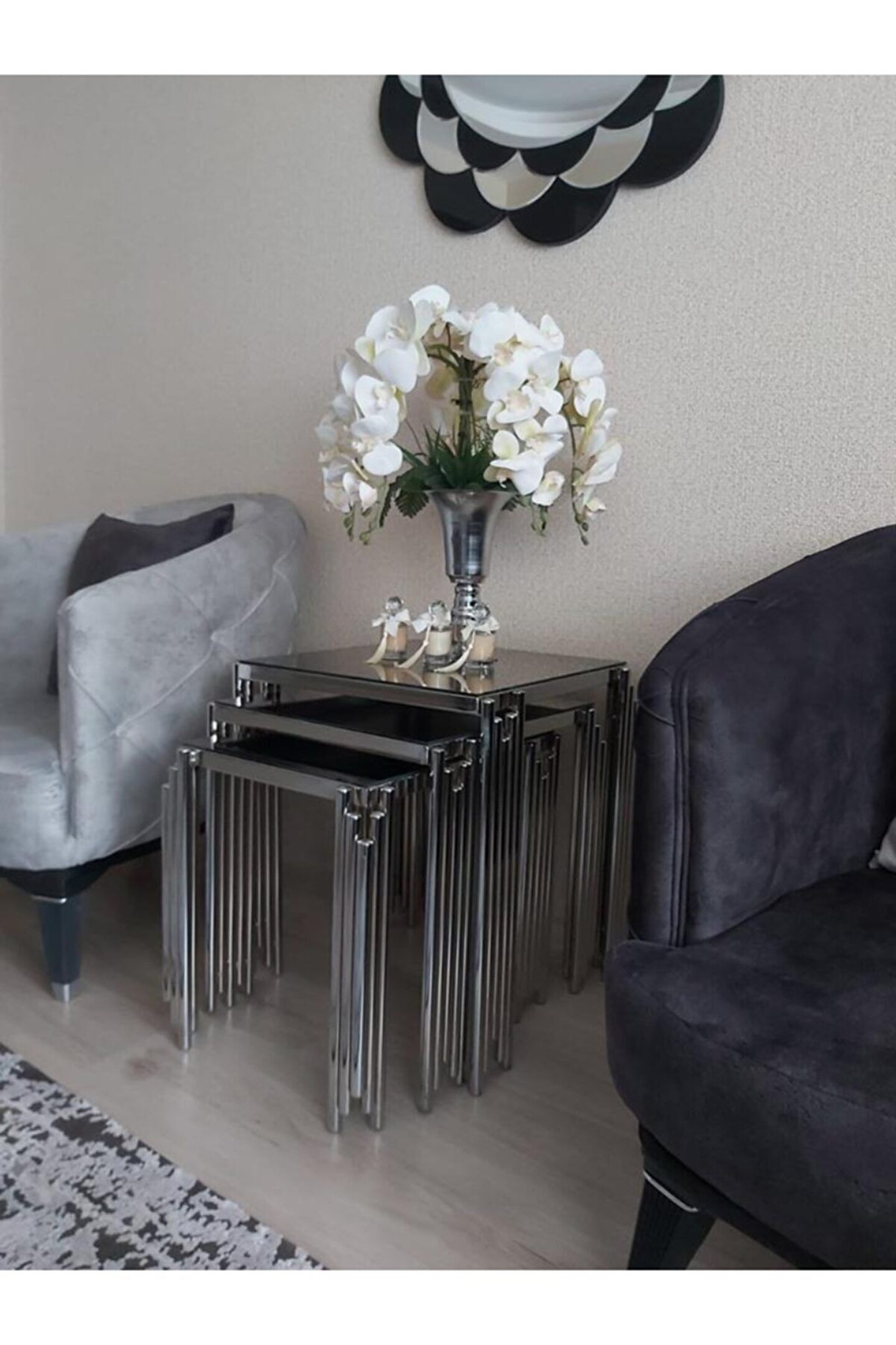 ekgconcept Piyano Kare Sehpa 3lü Gümüş