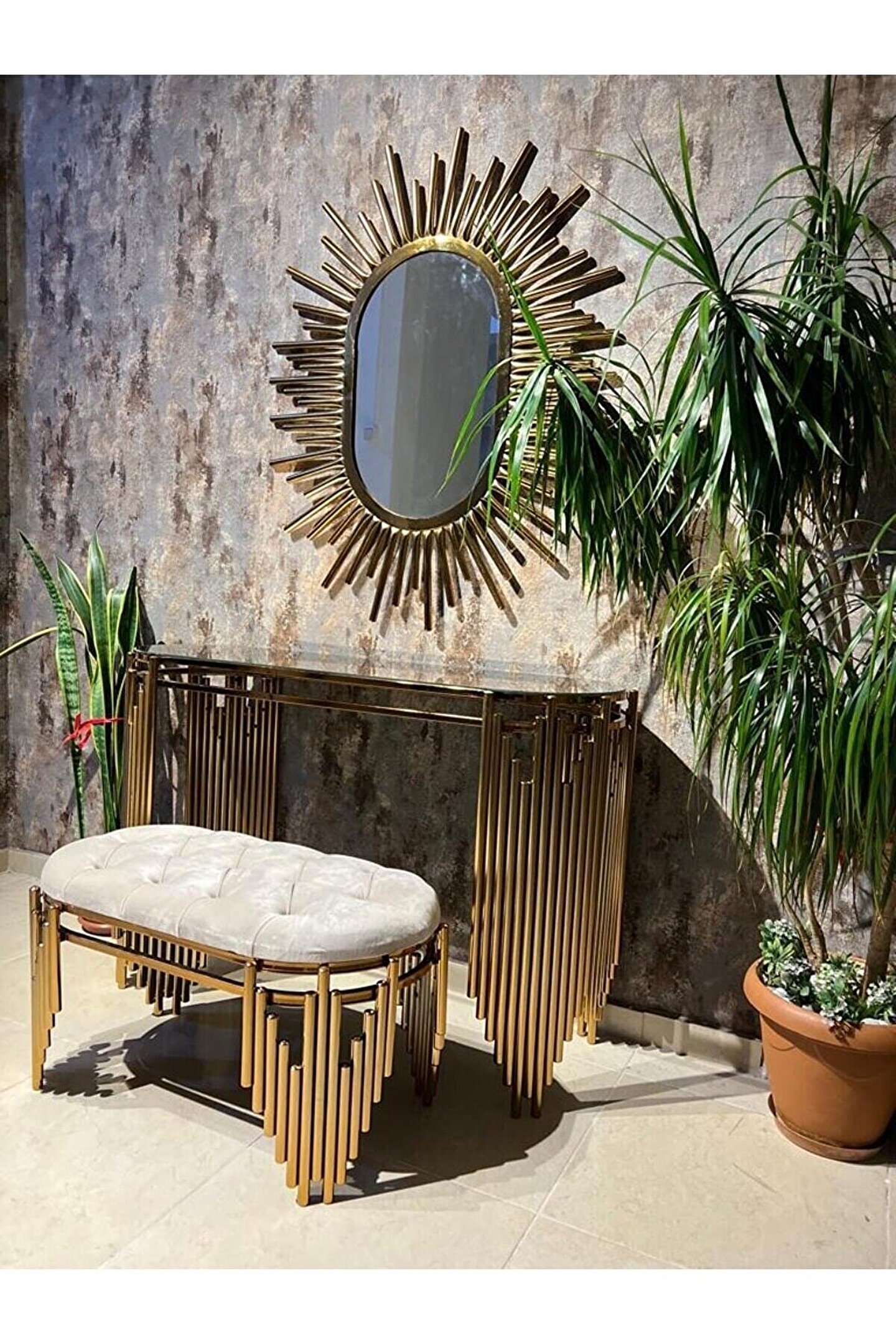 Modern tasarımıyla evinizin dekorasyonuna şıklık katan metal dresuar takımı, dayanıklı yapısıyla uzun ömürlü kullanım sunar; Paslanmaz kararmaz lak kaplama sayesinde, zamanla renk değişimi ve kararma gibi sorunlarla karşılaşmazsınız; Aynalı yapısı ile hem fonksiyonel hem de estetik bir görünüm sağlar; günlük kullanım için idealdir; Metal malzemesi sayesinde ağır eşyalarınızı güvenle yerleştirebilir ve dresuarın sağlamlığını hissedebilirsiniz;