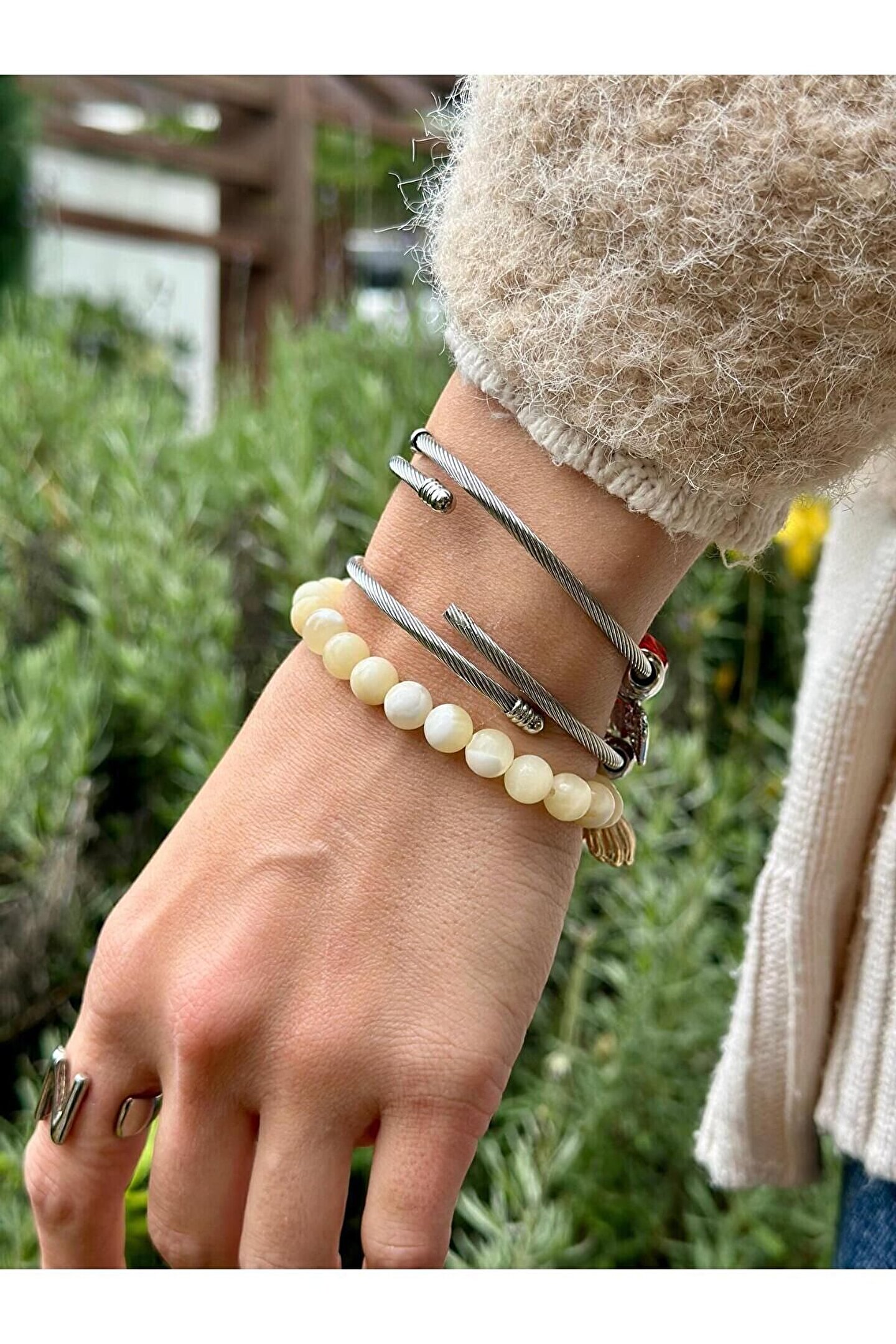 Doğal Kalsit Taşı Bileklik ; ✨ Özellikler: %100 doğal kalsit taşı Krem, beyaz ve açık sarı tonlarında doğal renk geçişleri Ruhsal denge, enerji ve canlılık taşı olarak bilinir Stresi azaltmaya, motivasyonu artırmaya yardımcıdır Günlük kullanım için şık ve sade tasarım