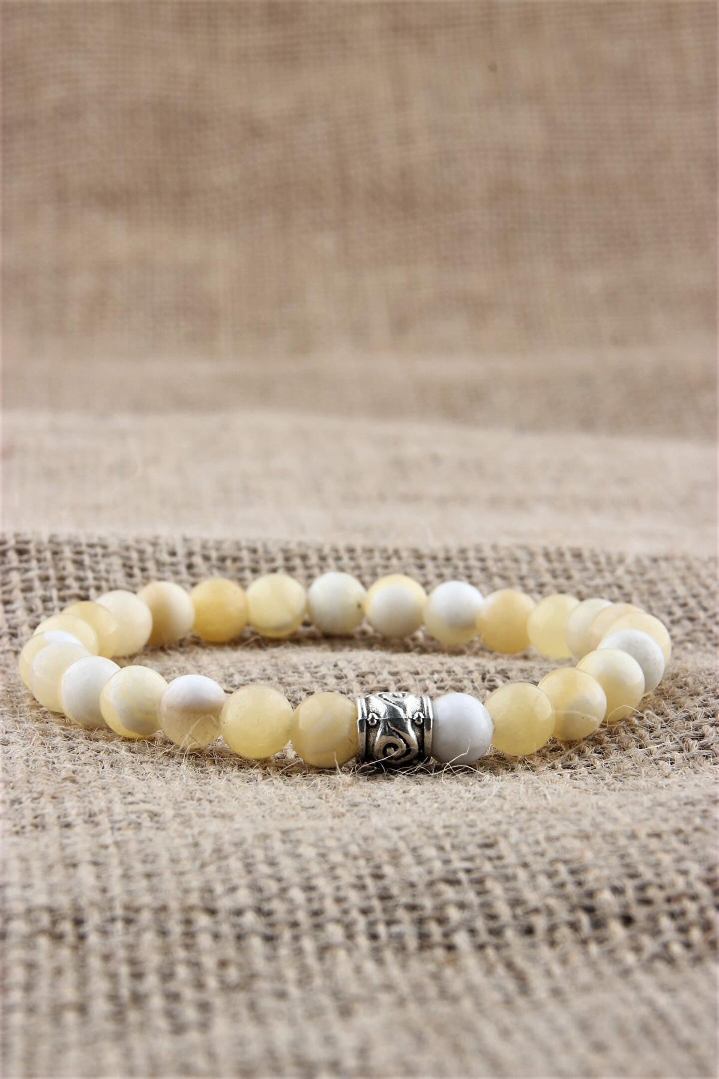 EL YAPIMI 8 mm şifalı kalsit 100%100 doğal taş bileklik - elastik ipli - sertifikali
