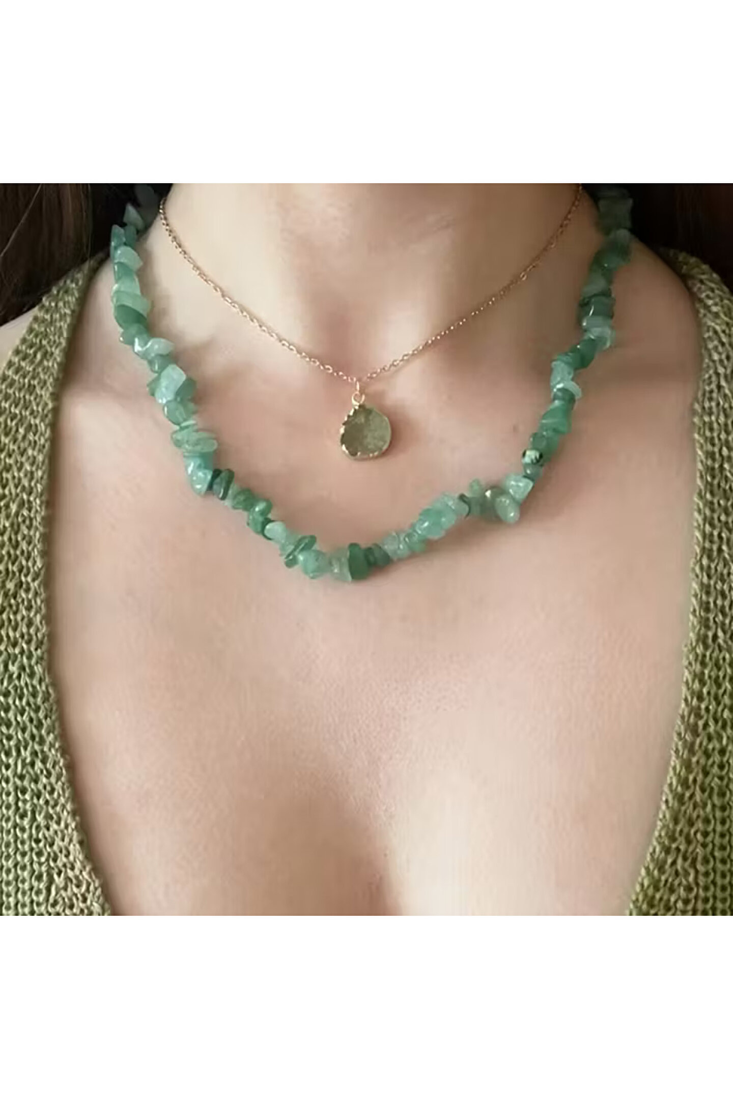EL YAPIMI Aventurin kolye kırıktaş doğaltaş 100%100 sertifikalı ✨ – Şans ve Bolluk Taşı