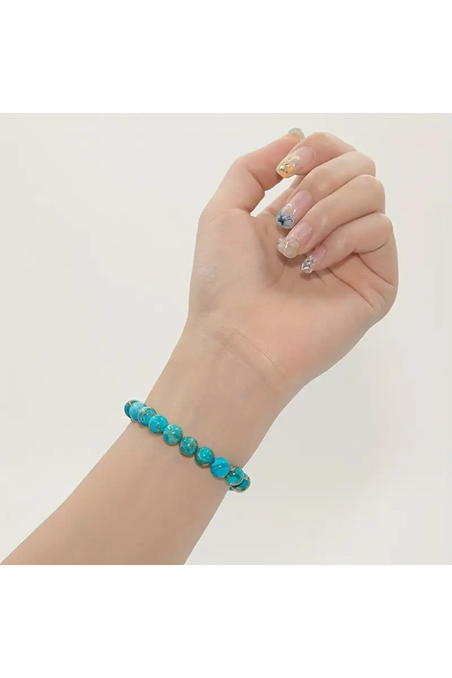 Siyah Damarlı Turkuaz Doğal Taş Bileklik – 8 mm
