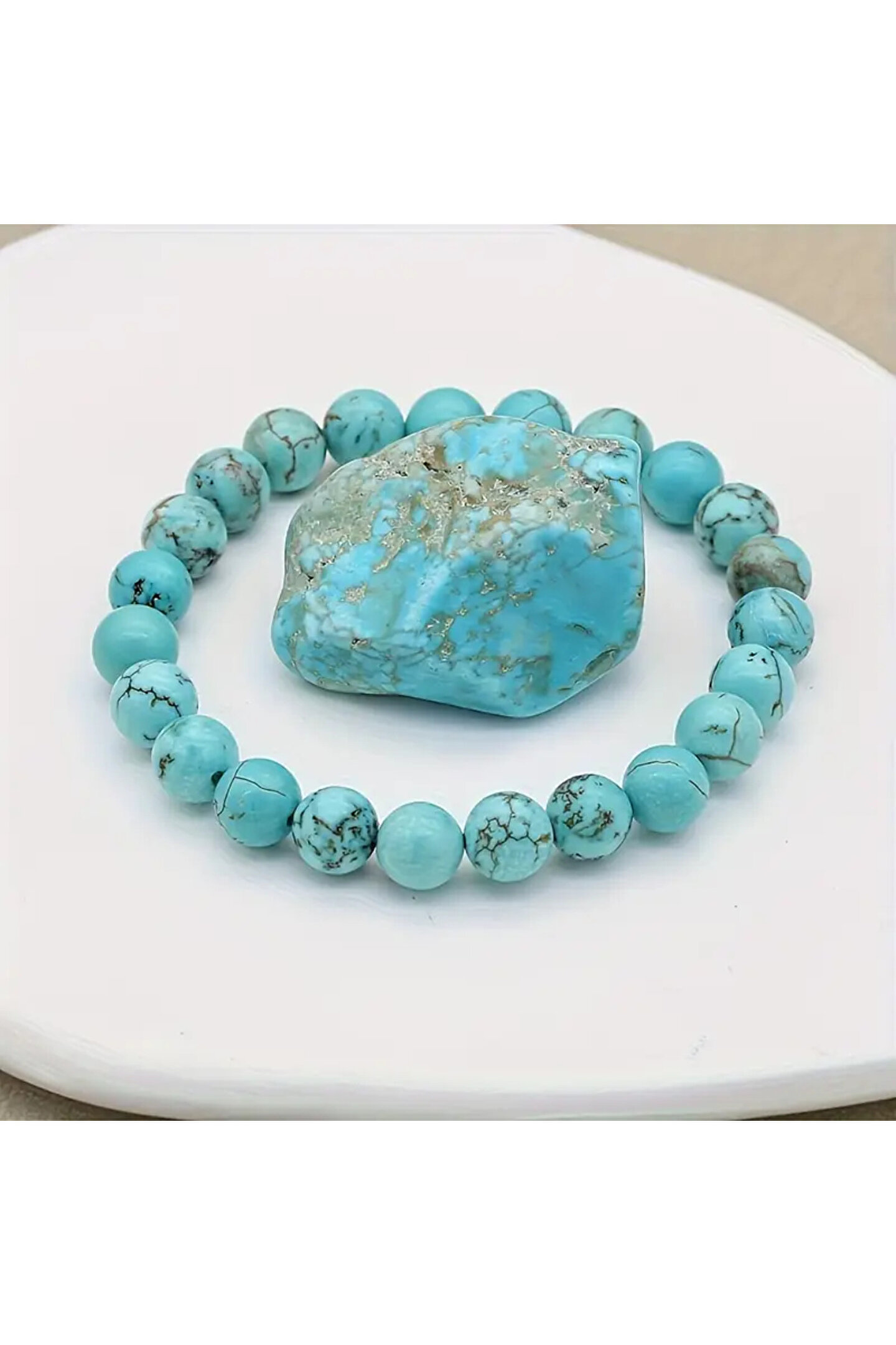 EL YAPIMI Şifalı- siyah Turkuaz Doğal Taş bileklik-100%100 doğal taş 8mm- enerji ve huzur verir