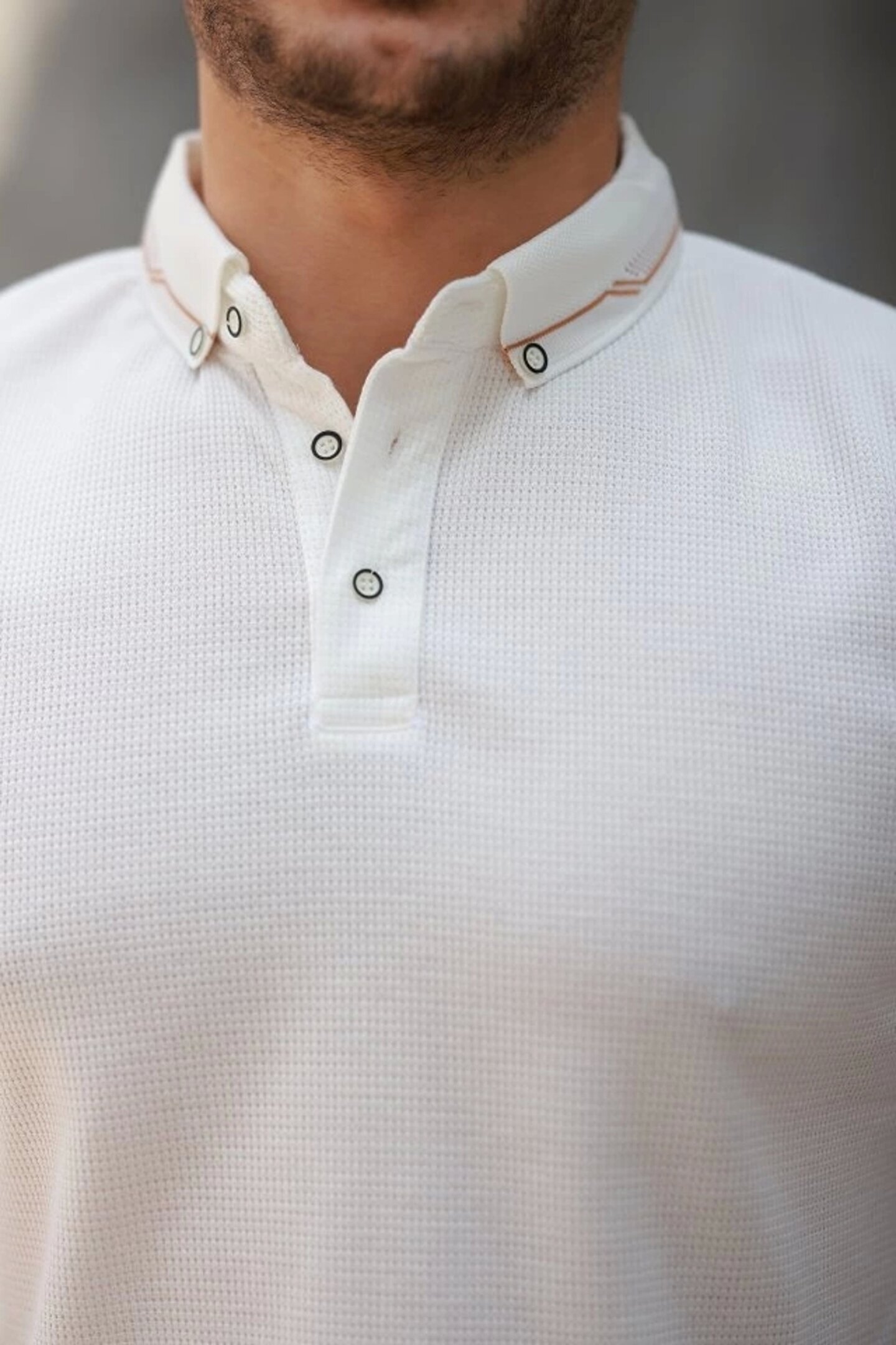 Erkek Düğmeli Yaka Waffle Kumaş Kısa Kollu Tişört