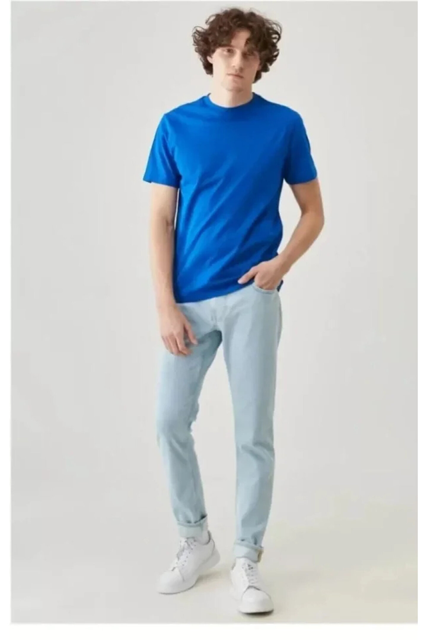 Unisex Düz Biskilet Yaka Oversize T-shirt - Mavi