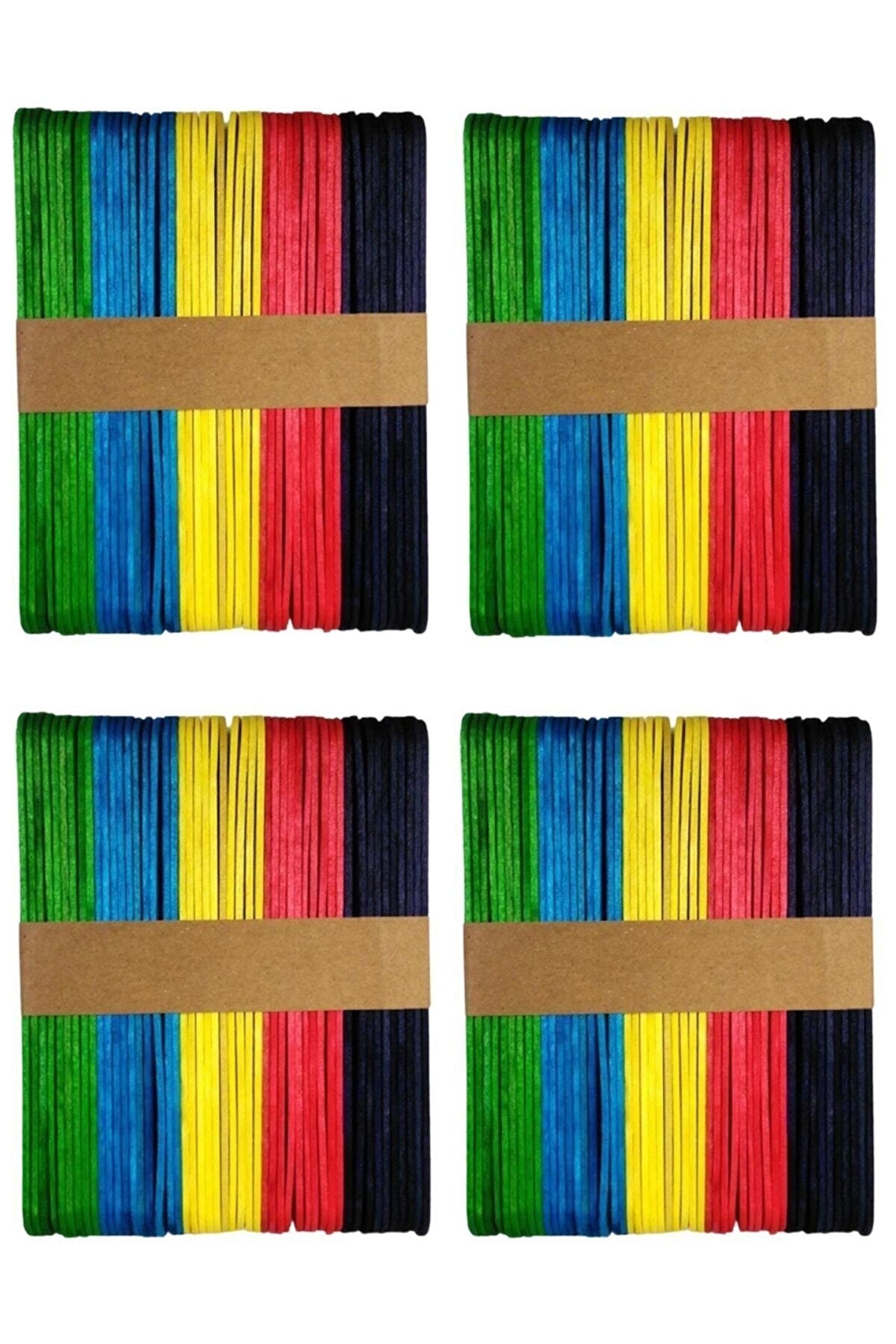 Elif İş Eğitimi Geniş Renkli Ahşap Çubuk 50 Li 4 Paket Dil Çubuğu Abeslang 200 Adet Set