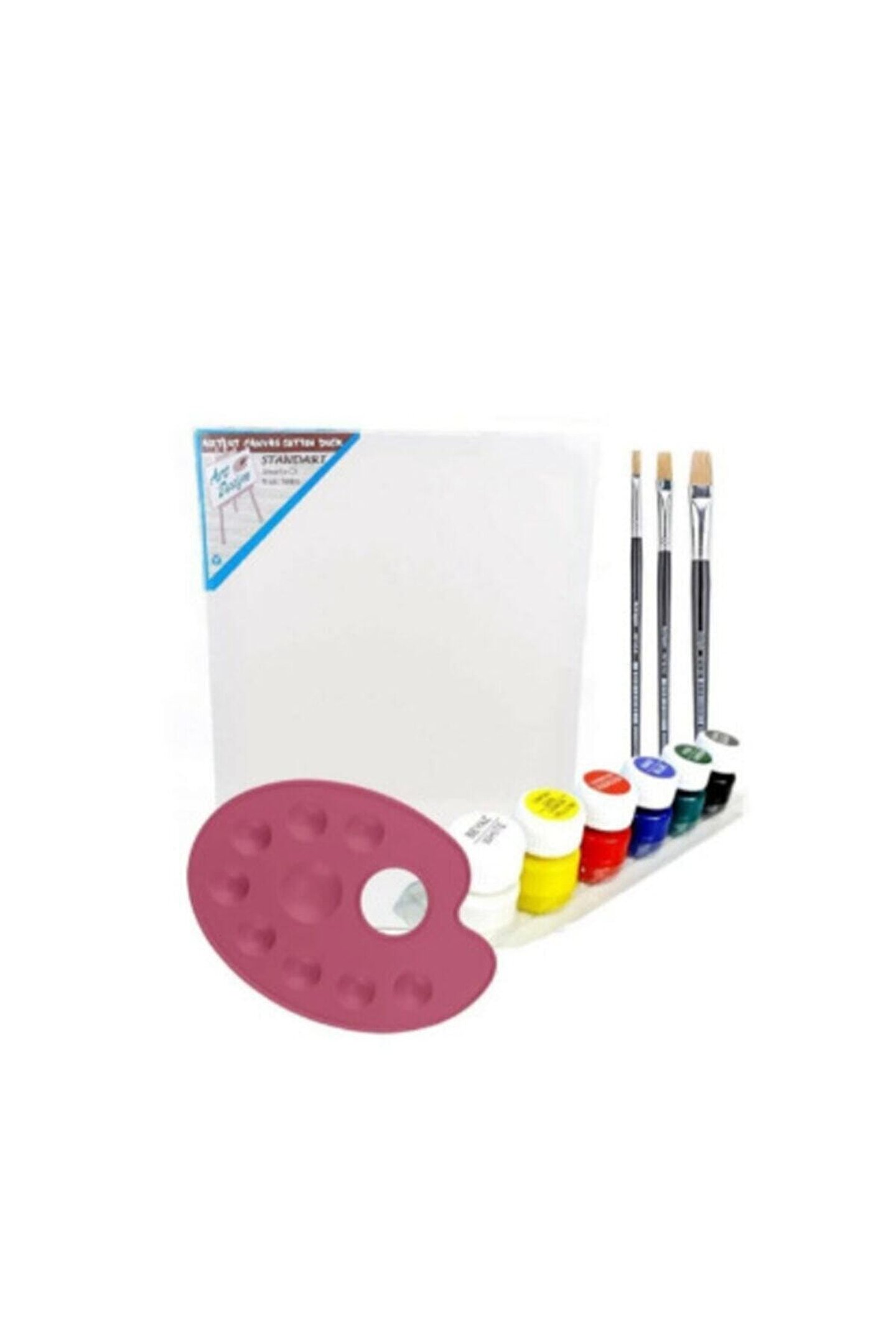 Elif Kırtasiye 35x50 Cm Resim Tuvali Boyama Başlangıç Seti - Akrilik Boya Fırça Palet Tuval Set T.s