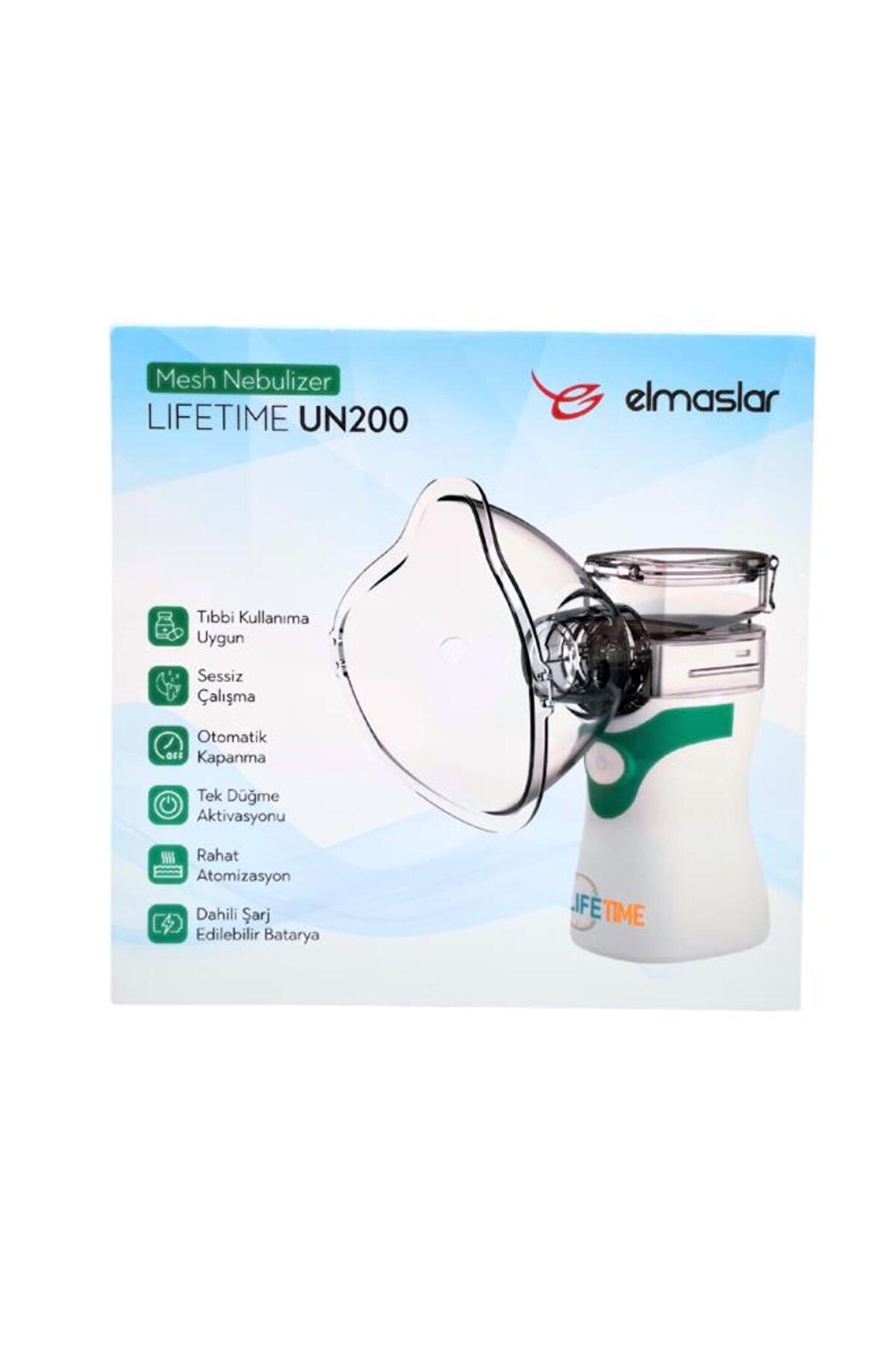 - Elmaslar Lifetime Un200 Mesh Nebulizatör, solunum yolu rahatsızlıkları olan bireyler için etkili bir tedavi seçeneği sunar.; - Mesh teknolojisi sayesinde, ilaçların ince ve homojen bir şekilde dağıtılması sağlanır, bu da tedavi etkinliğini artırır.; - Kompakt ve hafif tasarımı ile taşıması kolaydır, böylece evde, işte veya seyahatte rahatlıkla kullanılabilir.; - Sessiz çalışma özelliği, kullanıcılara ve çevresindekilere rahatsızlık vermez.; - Kolay temizlenebilir yapısı sayesinde hijyenik kullanım imkanı sunar ve uzun süreli kullanım için idealdir.