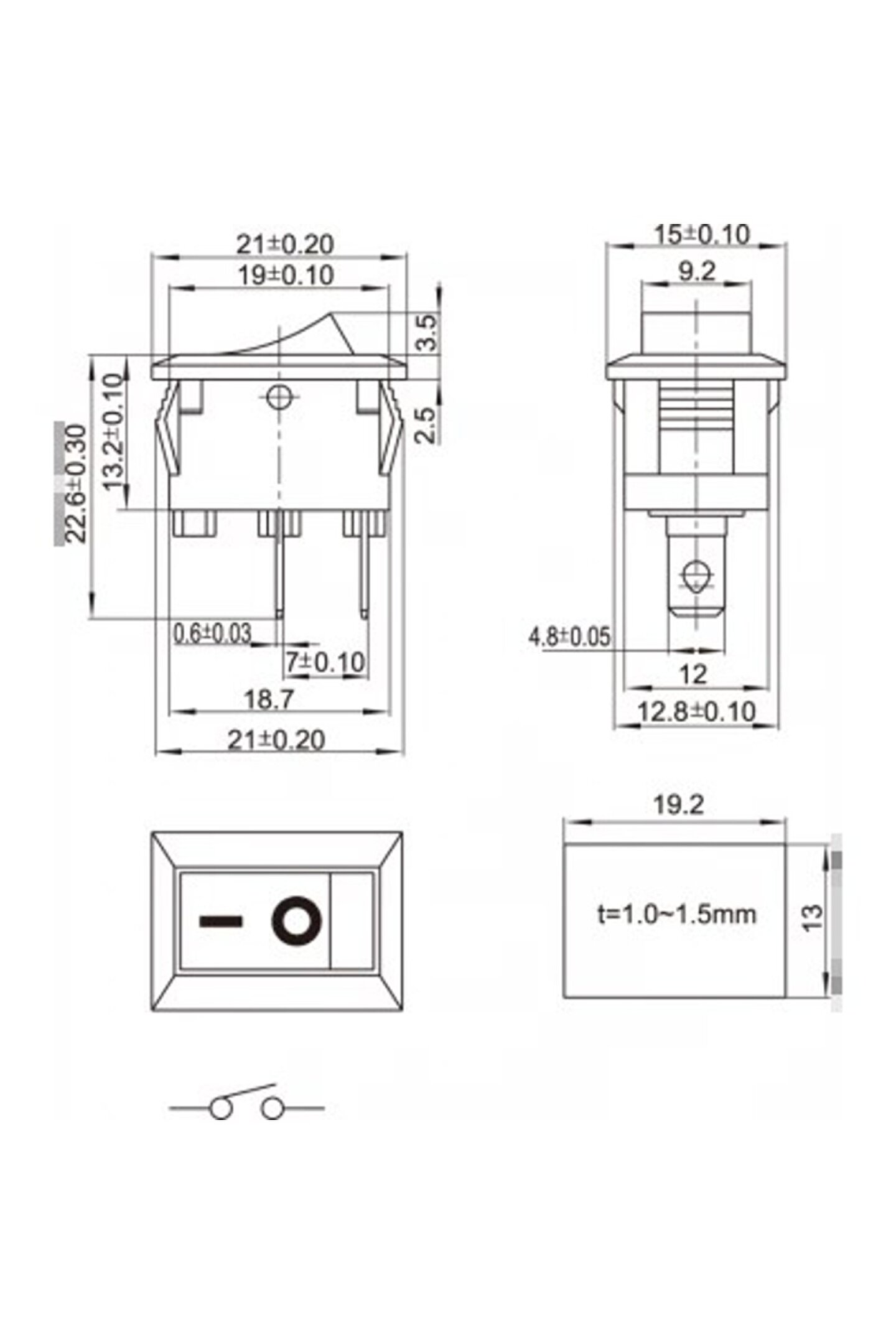 Anahtar, basıldığında devreyi açar ve devreyi kapatır. On konumunda, rocker aşağı doğrudur ve devre açıktır. Off konumunda, rocker yukarı doğrudur ve devre kapalıdır.