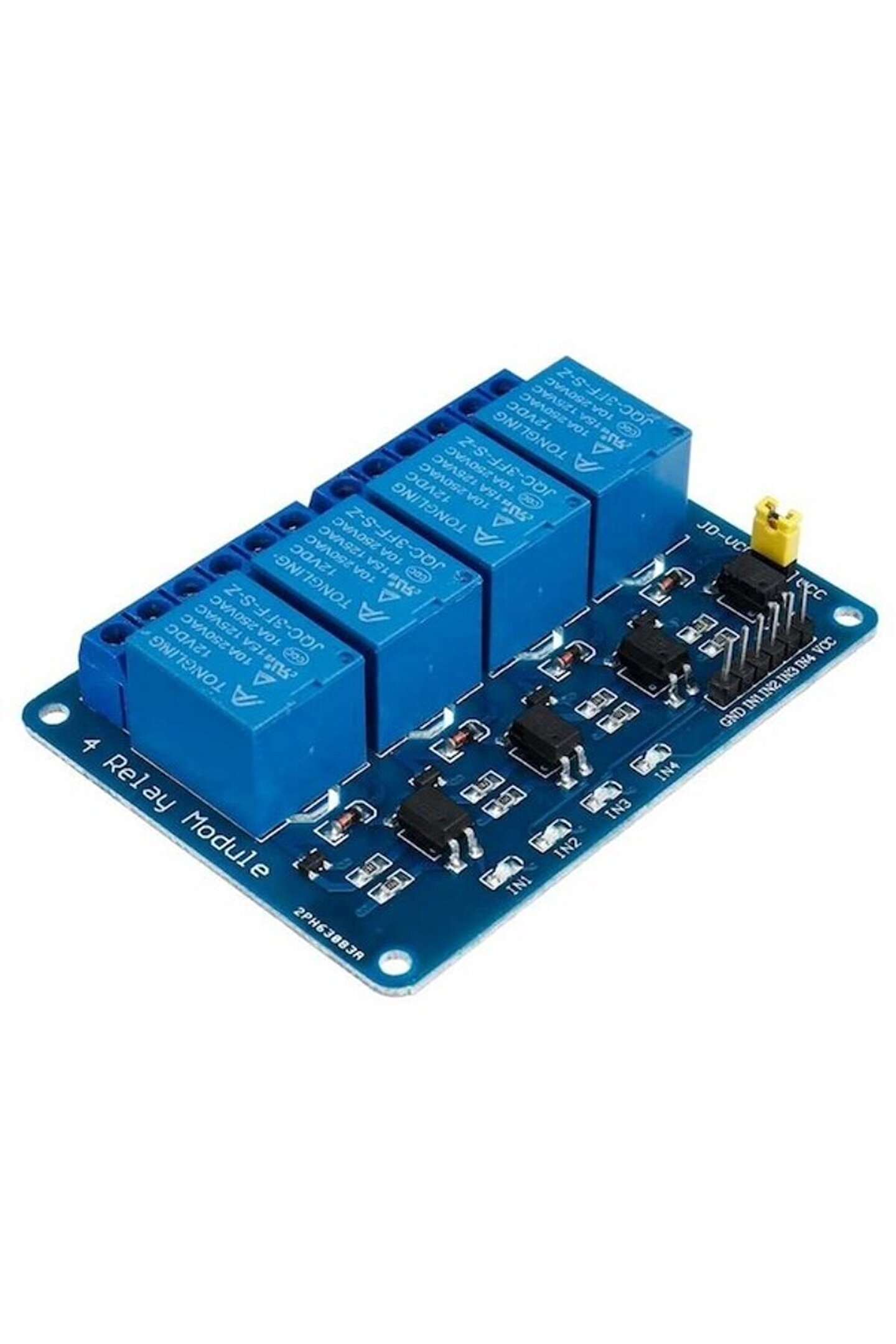 4 Kanal 24v Röle Modülü 24v Röle Kartı - 4 Kanal 24V tetik gerilimiyle çalışan 4 kanal röle modülüdür. Bu röle modülü yardımıyla AC gerilimleri rahatlıkla anahtarlayabilirsiniz. Röle mekanik yapıda olduğundan kontrol birimine zarar verme ihtimali çok düşüktür. Lamba, fan, priz, televizyon, bilgisayar vb. birçok cihazı bu röle yardımıyla kontrol edebilirsiniz. PLC'lerle çalışmaya uygundur. Ürün 24Vtur. Görsellerdeki 12V yazısını dikkate almayınız. Teknik Özellikler: Model: 24V 4 Kanal Röle Modülü; Çalışma Gerilimi: 24V; Anahtarlama Voltaj ve Akım Dayanımı: 10A-250VAC/30VDC , 12A-125VAC/28VDC; Ürün İçeriği: 1 Adet 24V Röle - 4 Kanal;