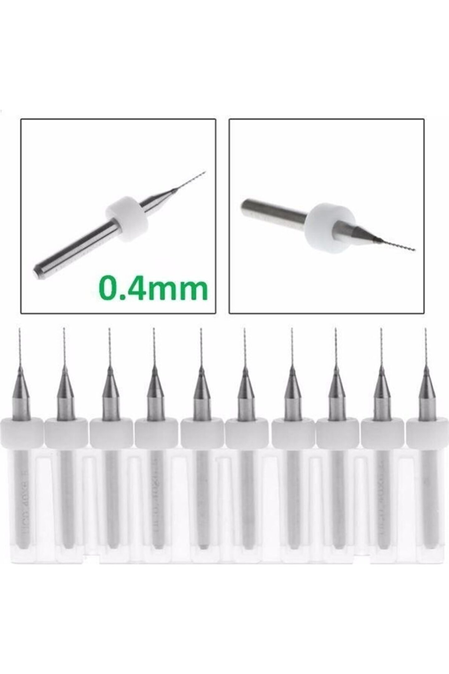EmAyCenter Pcb Matkap Ucu 0.4 mm Tungsten Mikro Karbür 10lu 18 Shank Spiral