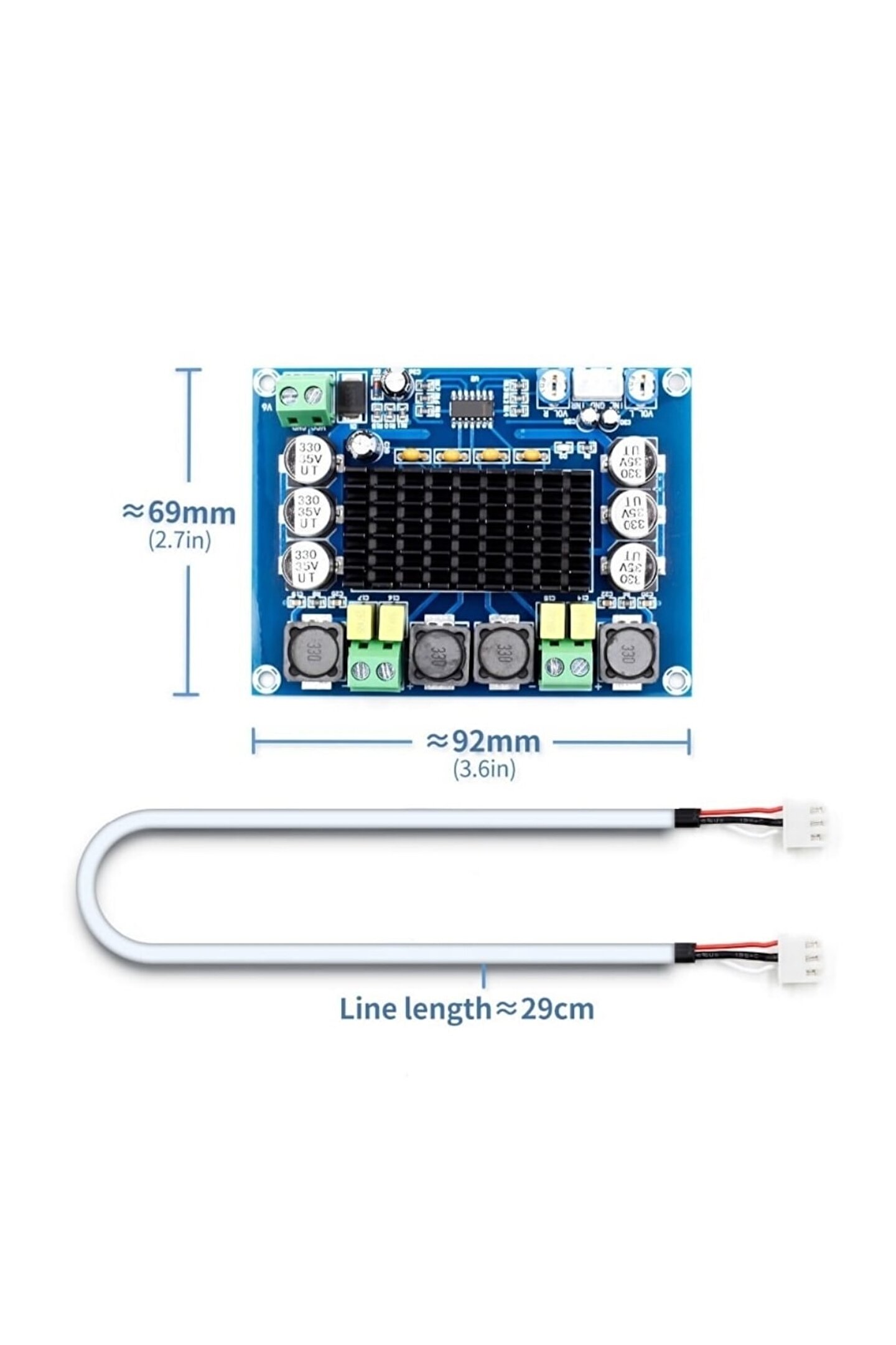 XH-M543 TPA3116D2 Stereo 2x120W Ses Amfi Modülü Class D Çift Kanallı Class D Çift Kanallı Dijital Ses Müzik Kuvvetlendirici Yükseltici Modülü TPA3116 D2 Modülü ile hoparlör amplifikatör kartı DC 12-26V girişi, evrensel ses amplifikatörü alıcısı ve ses kalitesini iyi gerçekleştirebilir. 2x120W sol ve sağ çift kanallı ses çıkışlı stereo amplifikatör kartı ile inanılmaz stereo sesin keyfini çıkarabilirsiniz. Büyük ısı emici, aşırı ısınma korumalı Stereo ses amplifikatörü modülü % 90'ın üzerinde verimlilik ve yüksek doğruluk sağlar. DIY amplifikatör kurulu, DIY kitaplık hoparlörü, araba ses bileşenleri, ev sineması ses sistemi ve daha fazlasında kullanılabilir. Uyarılar: Yüksek güçlerde ayrıca bir fan ile soğutulması gereklidir. ; Wifi sinyallerinden uzak tutulması iyi olur. ; Uygun olan korumalı kablolar ile sesin taşınmasıdır. ; Kablolar mümkün olduğunca kısa olmalıdır. ; Güç kaynağı kalitesi ses kalitesini 1. derecede etkiler. ; 24V 10A Güç Kaynağı kullanılması tavsiye edilir. ; 1 kanal için 60W altı hoparlör kullanımı hoparlöre zarar verebilir. ; Özellikler: XH-M543 ; Çip: TPA3116D2 ; Çift Kanal Stereo ; Gelişmiş hasssasiyet ve yüksek ses kalitesi ; Class D ; Çalışma Voltajı: DC 12V ~ 26V (24V kullanılması önerilir) ( En az kullanacağınız gücün 1.5 katı olmalıdır. ) ; Çıkış Gücü: DC12V 2x50W / DC24V 2x120W ; Verim: %90 ; Sinyal-Gürültü Oranı: 100dB ; Kısa devre koruması ; Aşırı sıcaklık koruması ; Yüksek voltaj koruması ; Düşük voltaj koruması ; Fazla yükleme hata koruması ; Boyutlar: 92mm x 69mm x 17mm ; K ullanım Talimatları: Güç Kaynağı: DC 12-26V voltaj güç kaynağı kullanın (24V kullanmanızı öneririz) ; Ses Girişi: Küçük 3 pin terminal girişi ve yaklaşık 30 cm özel ses terminal hattı. ; Güç Çıkışı: Lütfen hoparlörü kartın OUT çıkışına bağlayın. Olumlu ve olumsuz kutuplara dikkat edin! 4 ohm hoparlör önerilir. ; Ses Ayarı: Ses giriş terminalinin her iki tarafındaki potansiyometre sırasıyla sol ve sağ ses izlerine karşılık gelir. Sesi bir tornavidayla döndürün. ; Paket İçeriği: 1 Adet XH-M543 Amfi Modülü ; 1 Adet 20cm Ses bağlantı kablosu ;