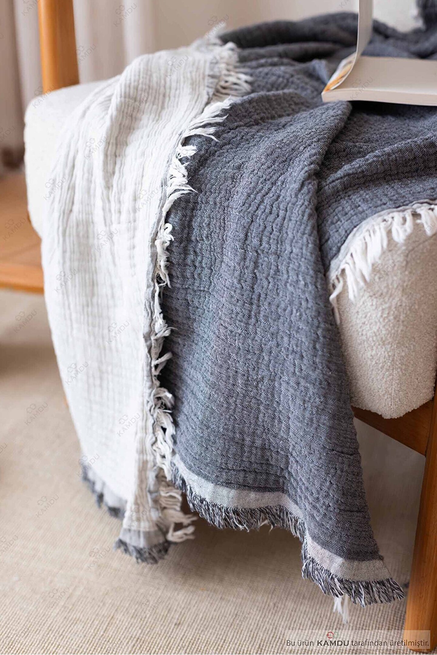- %100 pamuk materyalden üretilmiş olup, doğal ve yumuşak dokusuyla cildinize nazik bir dokunuş sağlar.; - Hava geçirgen yapısı sayesinde mevsim ne olursa olsun ideal sıcaklıkta tutar ve rahat bir kullanım sunar.; - 100x200 cm boyutlarındaki geniş tasarımı ile hem tv battaniyesi olarak kullanılabilir, hem de çok amaçlı bir örtü olarak evinizdeki her köşeye uyum sağlar.; - 1-2 kg ağırlığındaki hafifliğiyle taşıması kolaydır; istediğiniz yerde serin veya sıcak tutmak için pratik bir çözüm sunar.; - Düz deseniyle sade ve şık bir görünüm sergilerken, her türlü dekorasyonla uyum içinde olur.; - 30 derecede makinede yıkanabilme özelliği ile temizliği kolaydır; hijyenik kalmasını sağlamak için pratik bir yöntemdir.; - Müslin pamuklu kumaşı sayesinde dayanıklılık ve uzun süreli kullanım vaad eder.