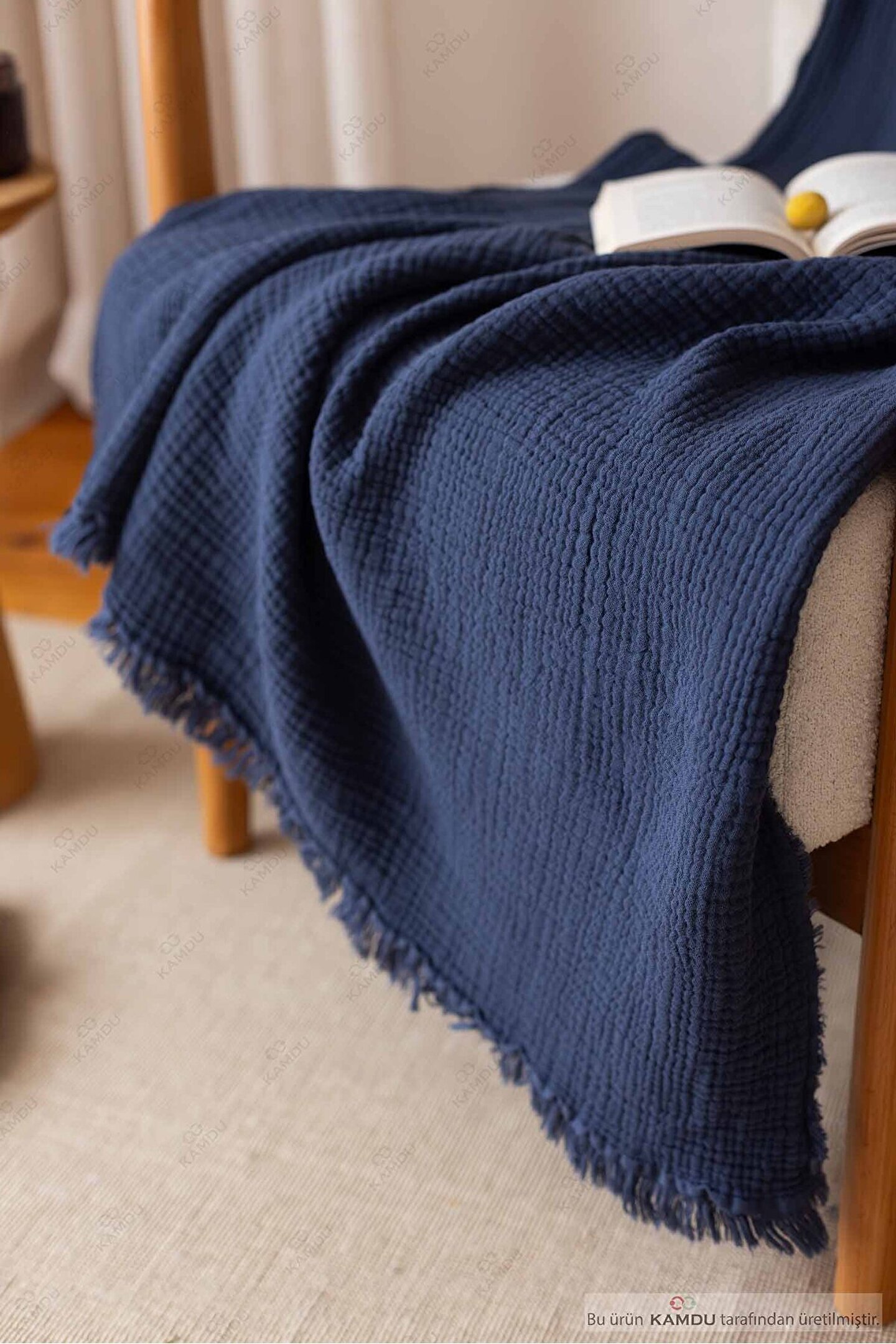 - %100 pamuk materyalden üretilmiş olup, doğal ve yumuşak dokusuyla cildinize nazik bir dokunuş sağlar.; - Hava geçirgen yapısı sayesinde mevsim ne olursa olsun ideal sıcaklıkta tutar ve rahat bir kullanım sunar.; - 100x200 cm boyutlarındaki geniş tasarımı ile hem tv battaniyesi olarak kullanılabilir, hem de çok amaçlı bir örtü olarak evinizdeki her köşeye uyum sağlar.; - 1-2 kg ağırlığındaki hafifliğiyle taşıması kolaydır; istediğiniz yerde serin veya sıcak tutmak için pratik bir çözüm sunar.; - Düz deseniyle sade ve şık bir görünüm sergilerken, her türlü dekorasyonla uyum içinde olur.; - 30 derecede makinede yıkanabilme özelliği ile temizliği kolaydır; hijyenik kalmasını sağlamak için pratik bir yöntemdir.; - Müslin pamuklu kumaşı sayesinde dayanıklılık ve uzun süreli kullanım vaad eder.