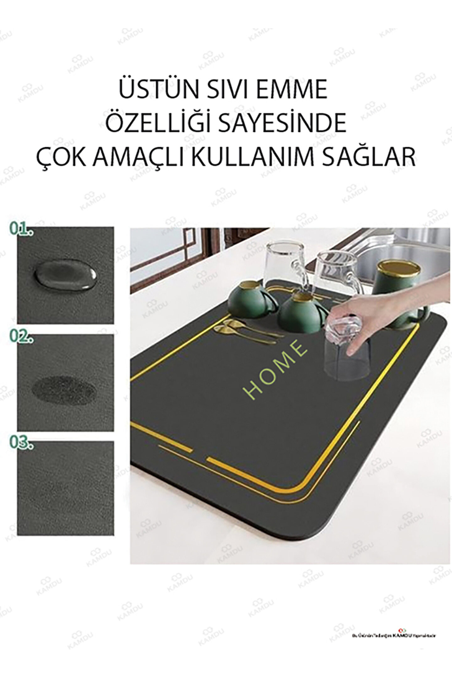 Siyah Renk Bulaşık Matı 35x50cm, Kurulama Matı, Tezgah Üstü Mat, Sihirli Paspas