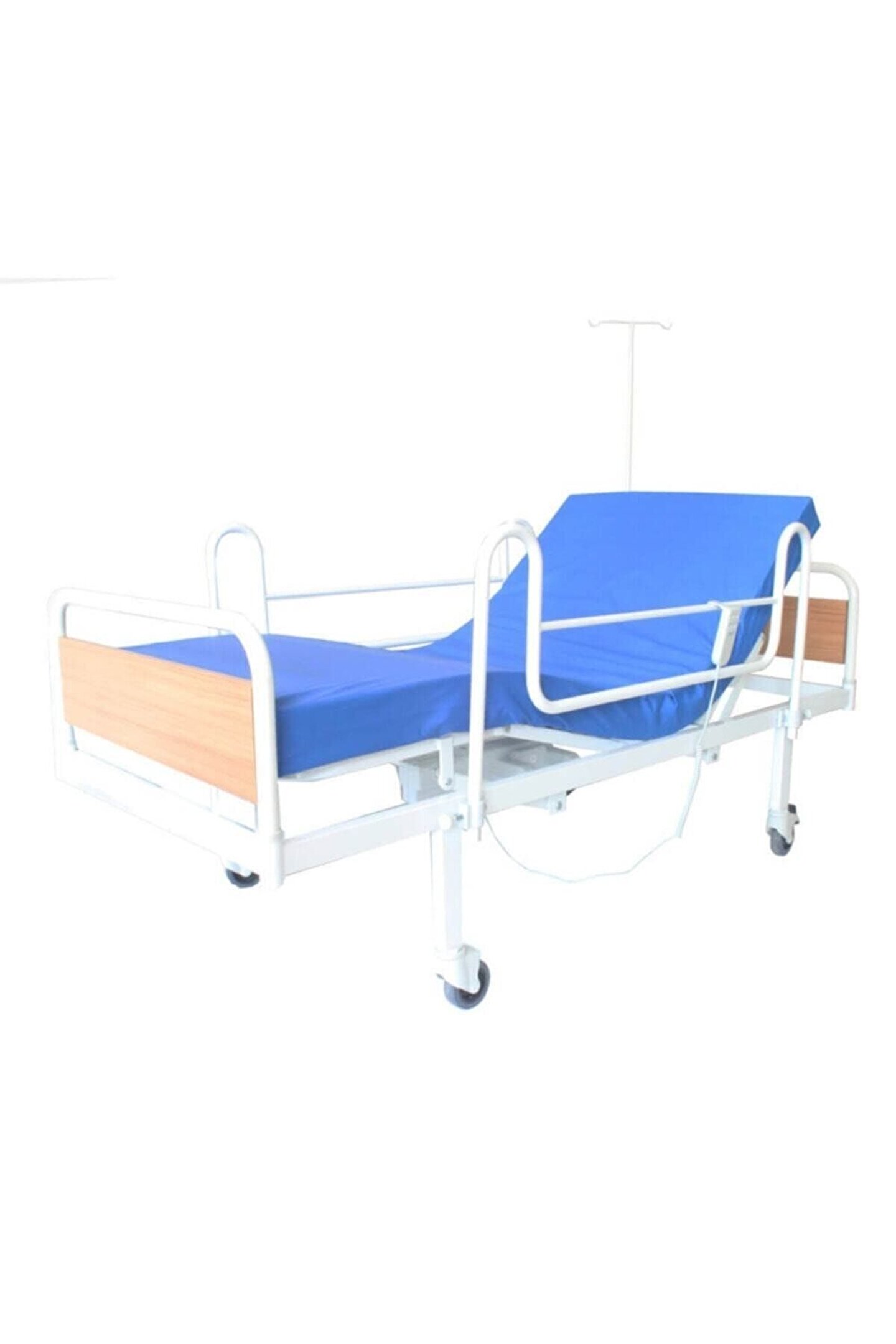 Bu modelimiz, yatan hastalarınızın evde bakılmasını kolaylaştırmak için üretilmiş modeldir.; Bel aşağısı ve bel yukarısı hareketleri için 2 adet dual motor kullanılmıştır.; Bu motorlar üç fonksiyonludur.; Birinci fonksiyon sırt bölgesini 80 dereceye kadar kaldırır.; 2. fonksiyon bacakları ters v şekline getirmektedir, üçüncü fonksiyon ise ikisini aynı anda yapmaktadır.; Ürünlerimiz arasına yeni aldığımız model olan tabanca demir korkuluklu karyola ekonomik hasta karyolaları segmentinin en pratik ürünü olma yolunda ilerlemektedir.; Demir aksamın üzerinde bulunan korkuluk düğmesine basıldığı anda tüm korkuluk ileri yatar ve tekrar aynı işlemle kaldırılabilir.; 150 kg'a kadar kaldırma kapasitesi bulunan ekonomik karyola, hastanızın ihtiyacını karşılayacaktır.; Ancak durumu ağır olan hastalarınızın bakımı da zor olduğundan dolayı, hem hastaya bakan kişi hem de hasta için diğer modellerimize de bakmanızı tavsiye ediyoruz.; Teknik Özellikler: 2 yıl belgeli olarak garantili ve 10 yıl yedek parça garantilidir.; ; Karyola + serum askısı + pil fiyatlara dahildir.; ; Karyolanın baş ve ayak kısımları motora kumanda eden el joystiği sayesinde hareket ettirilir.; ; 1 adet serum askısı mevcuttur.; ; Karyoladaki tekerlekler 100 mm çapındadır.; 2'si frenli 4 adet teker sistemi vardır.; ; Karyola üzerindeki delikler yatak örtüsünün nemlenmesini önler.; ; Elektrikler kesildiğinde 9 voltluk pil desteğiyle çalıştırılması mümkündür.; ; Elektrik motorları iki adet 4500 newton gücünde motor ile çalışır.; ; Hastanızı ister oturur pozisyona getirip yemek yedirebilir, isterseniz ayak kısmını kaldırarak dinlenmesine sağlayabilirsiniz.; ; Tam hijyen sağlayan fırın boya ile sistemi ile boyanan karyola iskeleti hastanıza sağlıklı bir yaşam ortamı sağlar.; ; Karyola başlıkları ahşap olup, temizlik veya başka bir sebeple istenildiği zaman çıkarılabilir.; ; Yan korkuluklar mandallı sistem sayesinde ihtiyaca göre aşağı yukarı kolaylıkla hareket eder.; ; ŞİLTE RENGİ FARKLI GELEBİLİR.; ; Ölçüler: En: 90 cm ; Boy: 190 cm ; Yerden Yükseklik: 40 cm ;