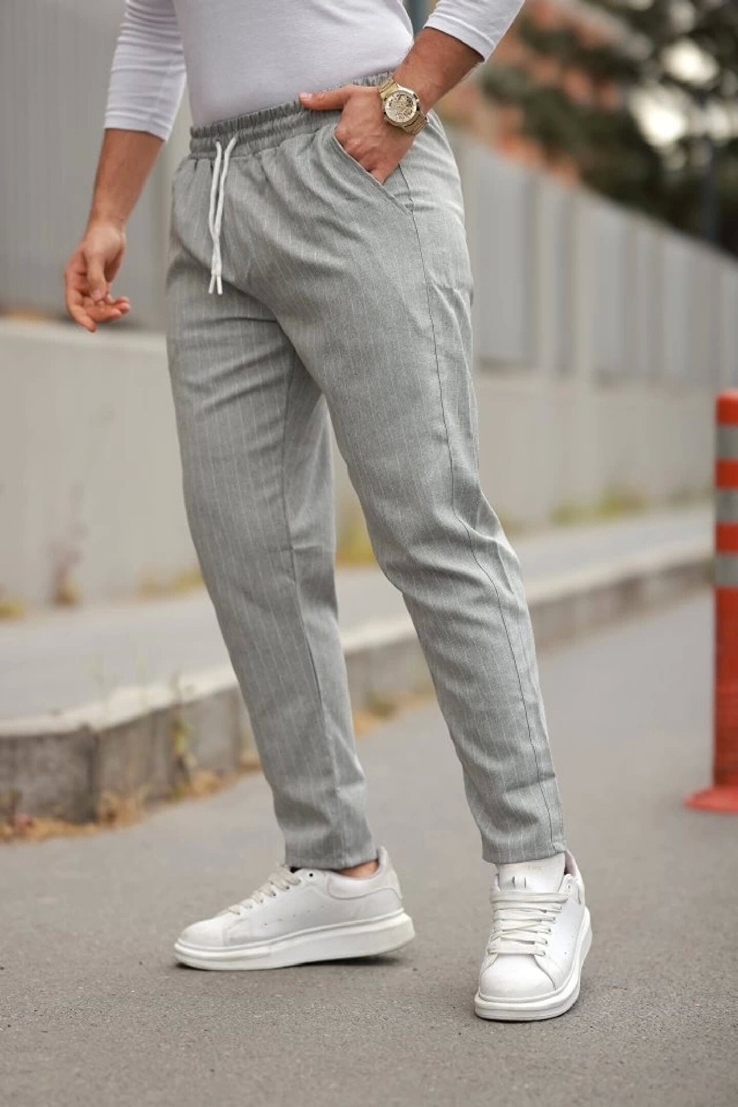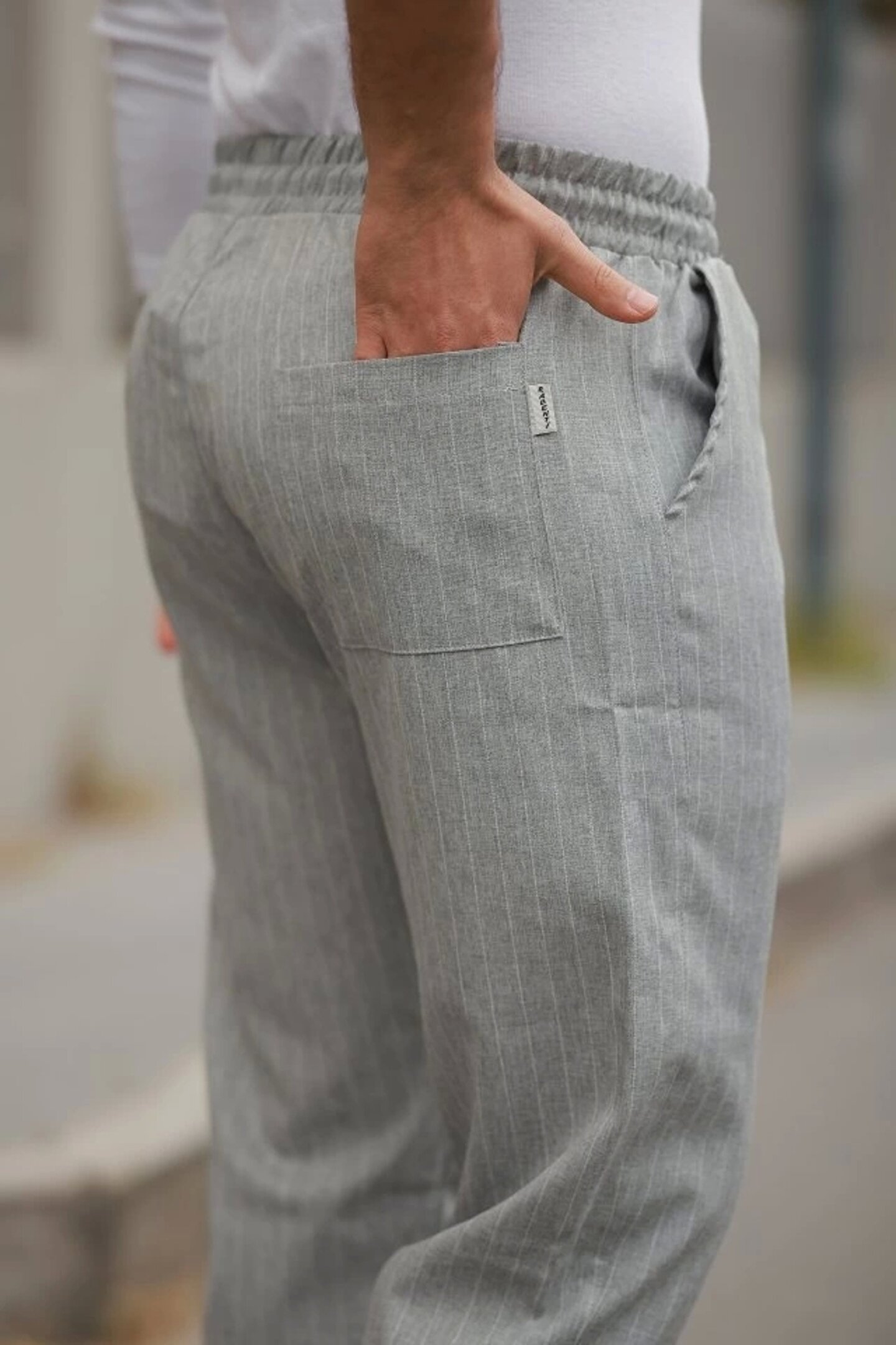 Emiray Store Erkek Beli Bağcıklı çizgili Pantolon
