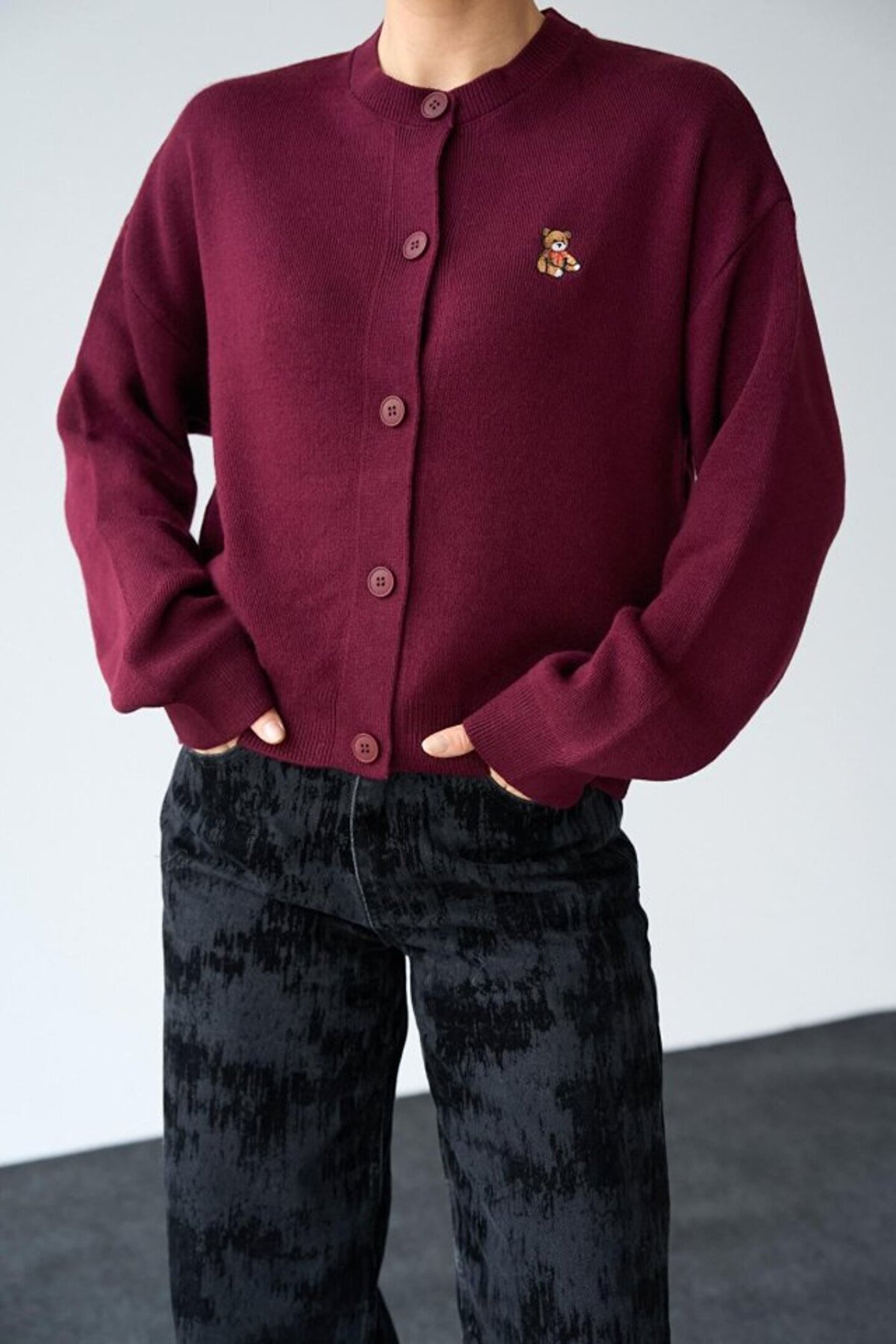 Emiray Store Gökyüzü Moda Ayıcıklı Hırka - Bordo