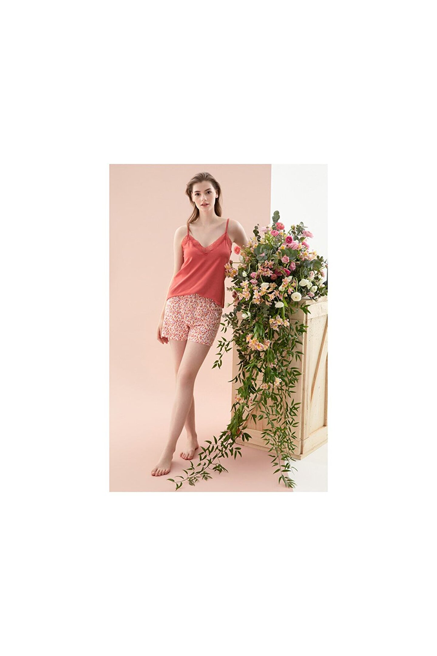 %95 viskoz ve %5 elastan içeriğiyle yumuşak dokunuşu ve esnek yapısı sayesinde konforlu bir uyku deneyimi sunar; Örme kumaş tipi, dayanıklılığı artırırken cildinize nazik bir dokunuş sağlar; Pamuklu materyal tercihi ile cilt dostu bir kullanım sunar ve nefes alabilir özelliğiyle terlemeyi minimize eder; Type 3 yıkama talimatına uygun şekilde kolayca temizlenebilir; böylece pijama takımınız uzun süre ilk günkü gibi kalır;