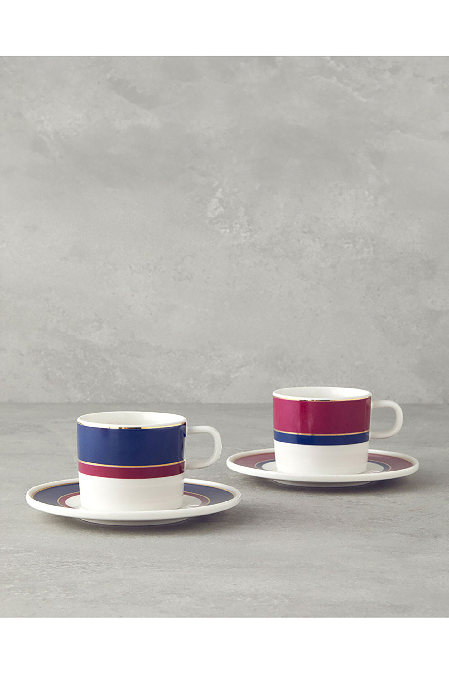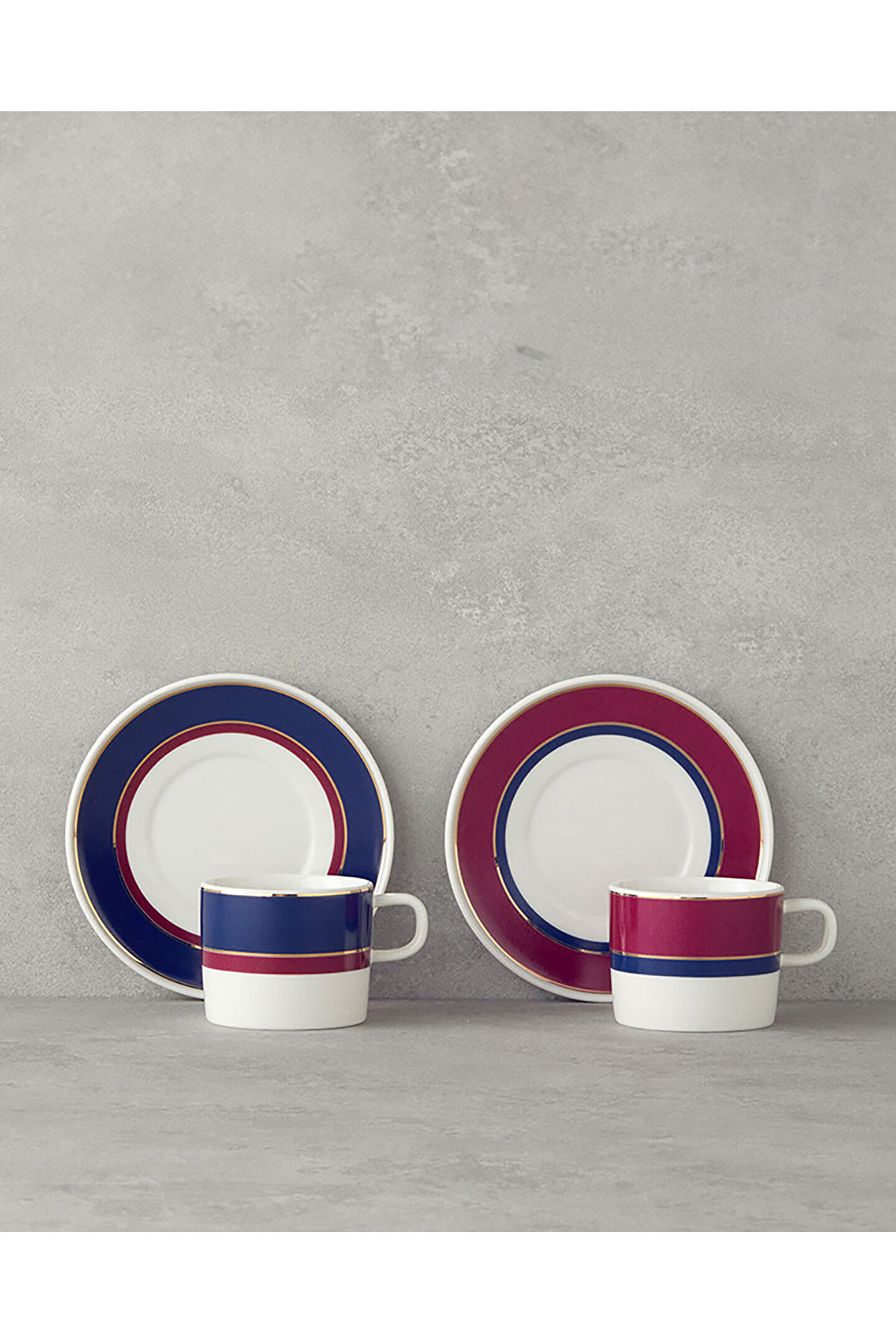English Home Carny Bone Porselen Fincan Takım 4 Parça 2 Kişilik Fuşya-Lacivert