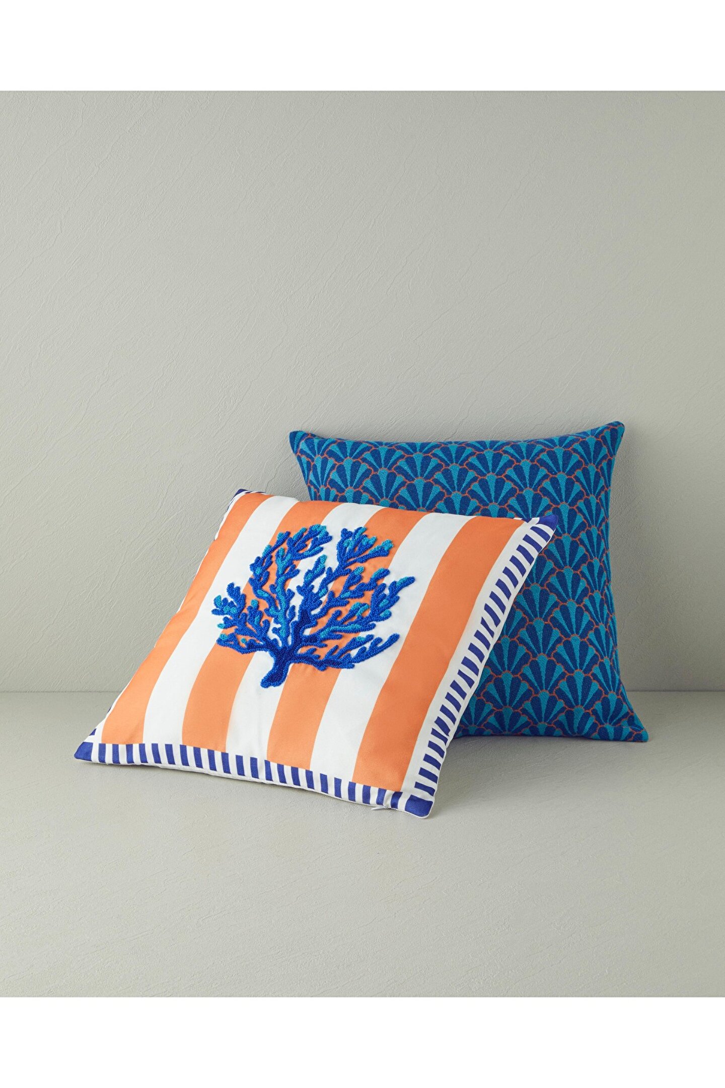 English Home Corallo Punch Nakışlı Dekoratif Kırlent Lacivert-Turuncu