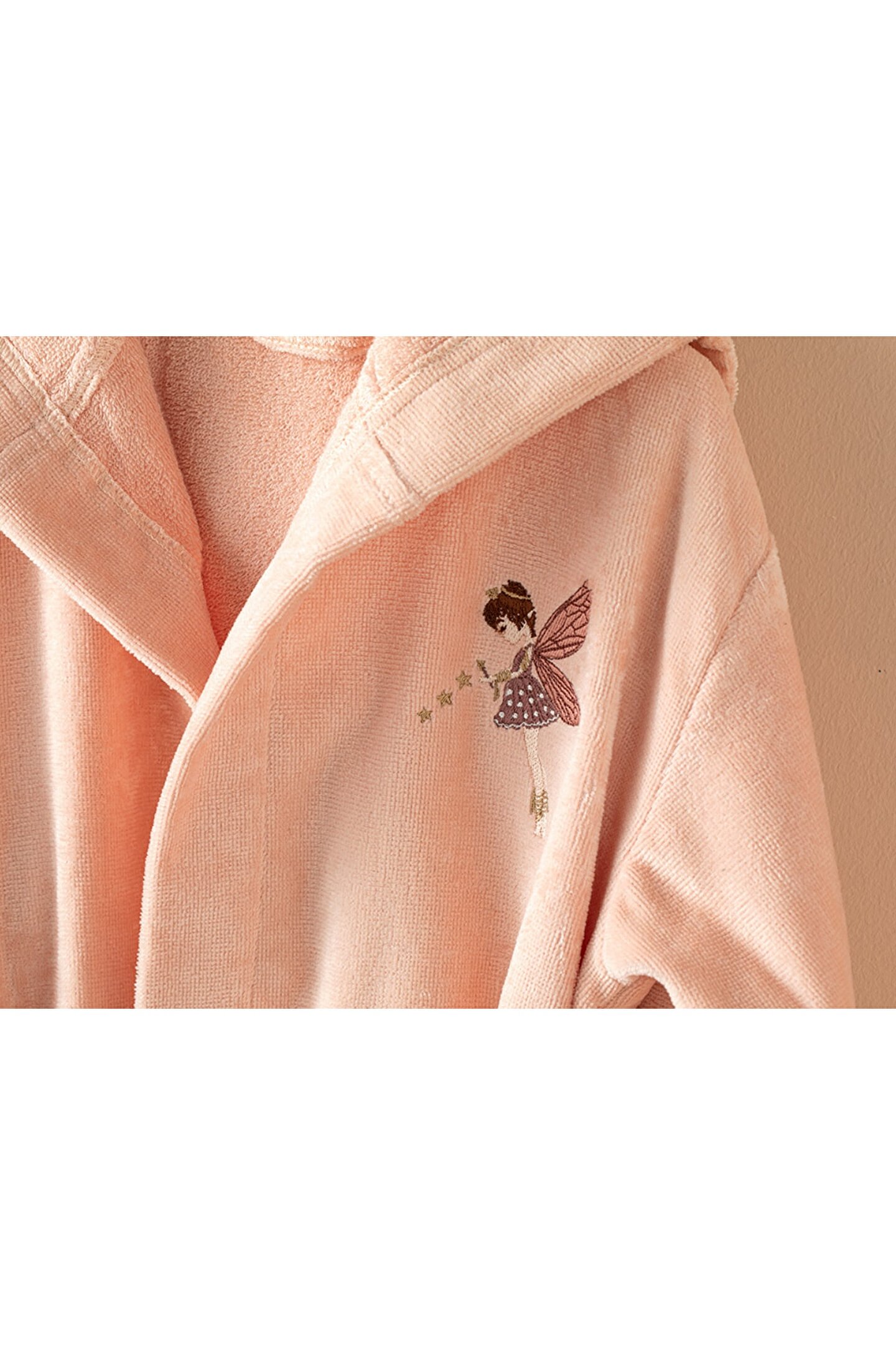 English Home Fairy Kadife Nakışlı Çocuk Bornoz 6-8 Yaş Pembe
