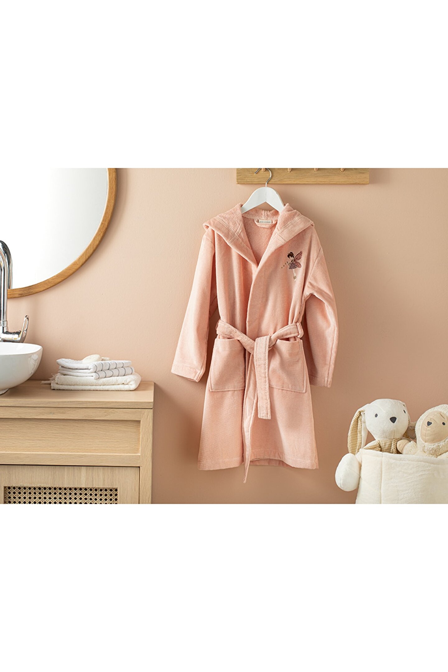 Tek parça olarak tasarlanmıştır, böylece çocuğunuzun banyo sonrası konforunu pratik bir şekilde tamamlar; - 6-8 yaş aralığındaki çocuklar için idealdir; büyüme dönemlerinde rahatlık ve şıklığı bir arada sunar; - Canlı pembe rengi ve zarif kadife nakış detaylarıyla çocukların banyo sonrası keyifli vakit geçirmesine olanak tanır;