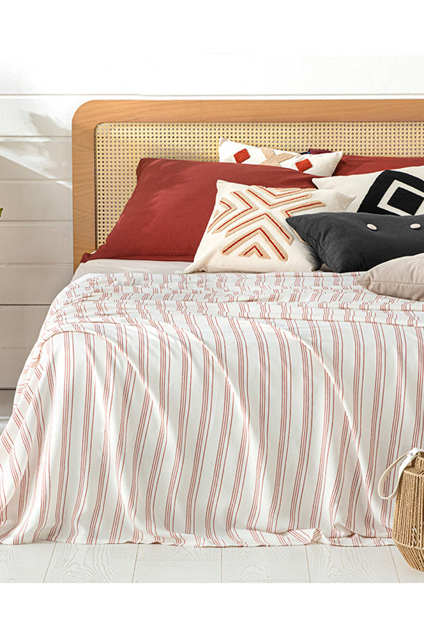 Fine Lines Ipliği Boyalı Viskon Çift Kişilik Pike Mercan
