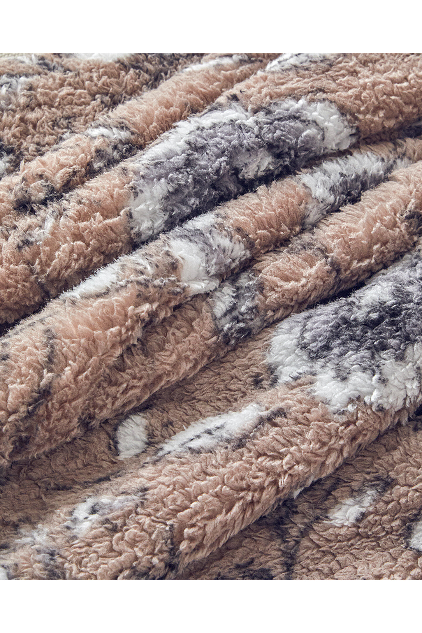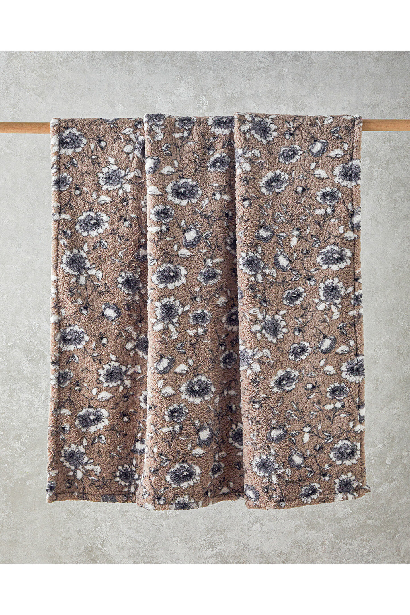 English Home Gardenia Glow Baskılı Sherpa Battaniye Vizon
