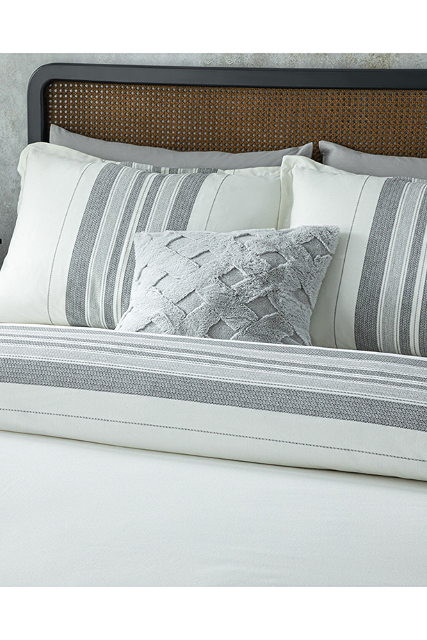 Yumuşak dokunuşuyla konforlu bir uyku deneyimi sunan pamuklu materyal, cildinizle dost bir temas sağlar; Lastikli çarşaf tasarımı sayesinde yatağınıza mükemmel uyum sağlar ve kayma yapmaz; Şık çizgili deseniyle yatak odanızın dekorasyonuna modern bir dokunuş katar; Kolay bakım imkanı sunan yıkama talimatları ile nevresim takımınız uzun süre ilk günkü gibi kalır; 30°'de çamaşır makinasında tersten yıkama ve düşük ısıda kurutma önerilir, orta ısıda ütü yapılabilir;