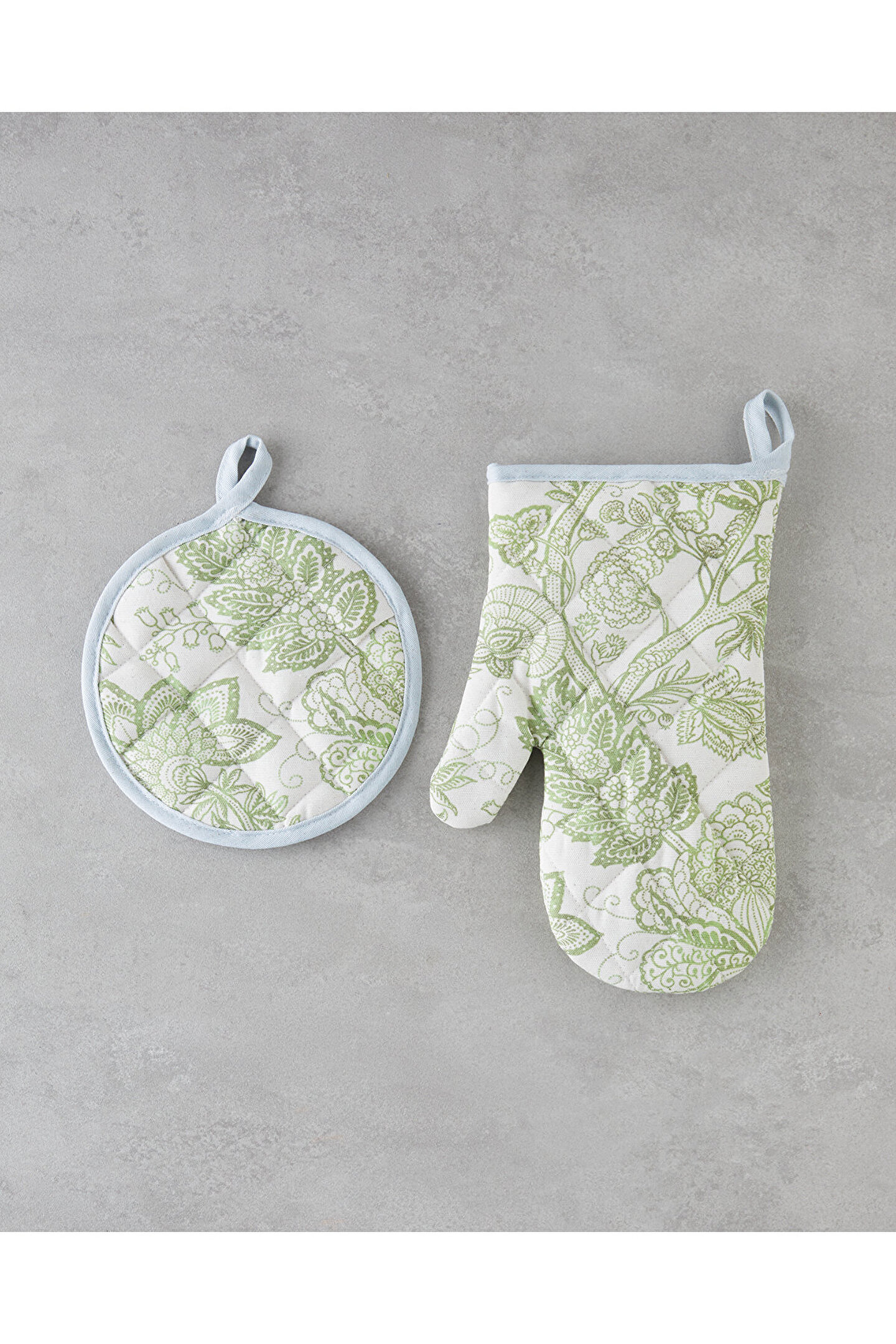 Greenery Pamuk Polyester 2 Parça Mutfak Seti 17x30 cm+20x20 cm Beyaz - Yeşil