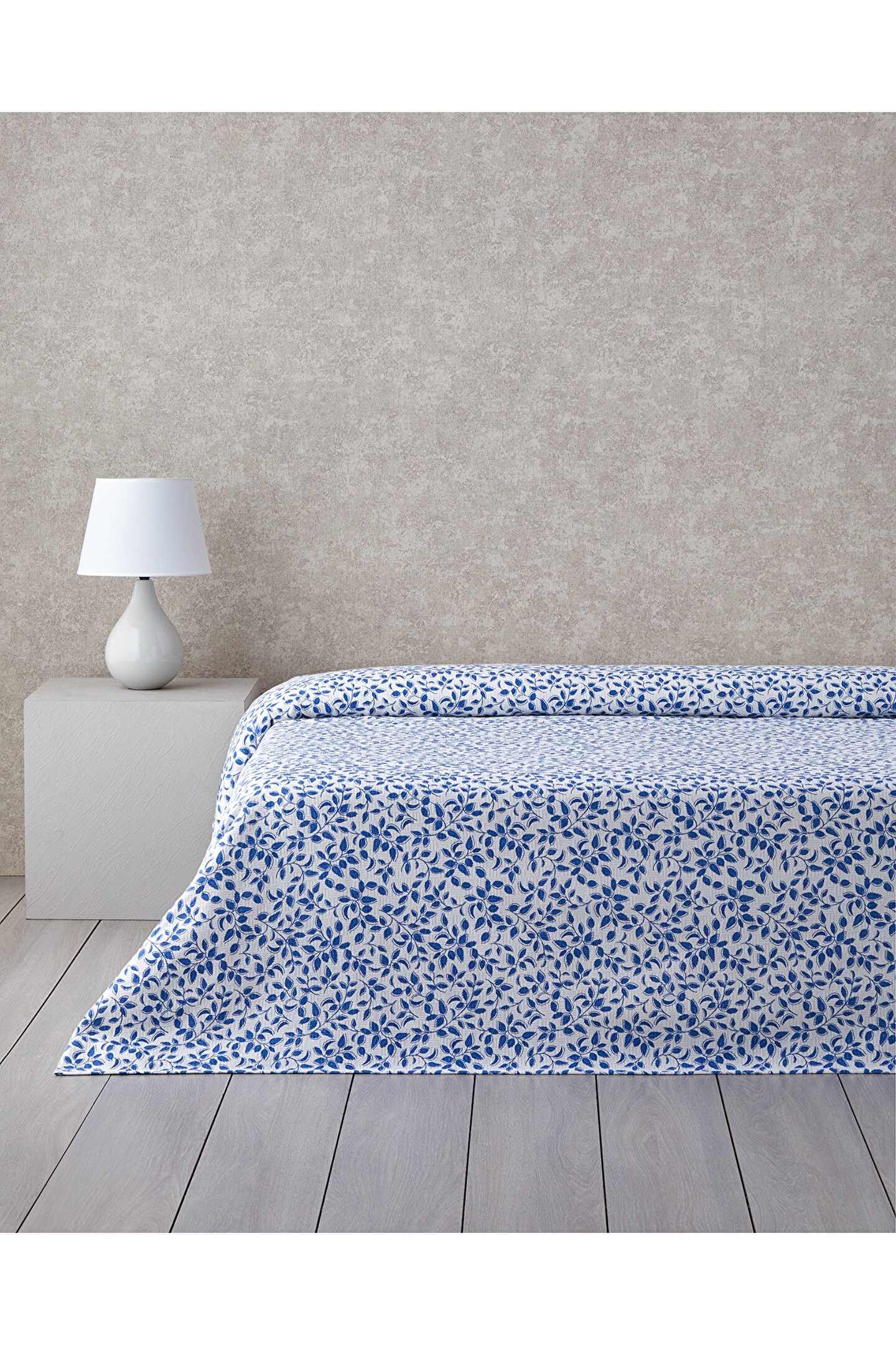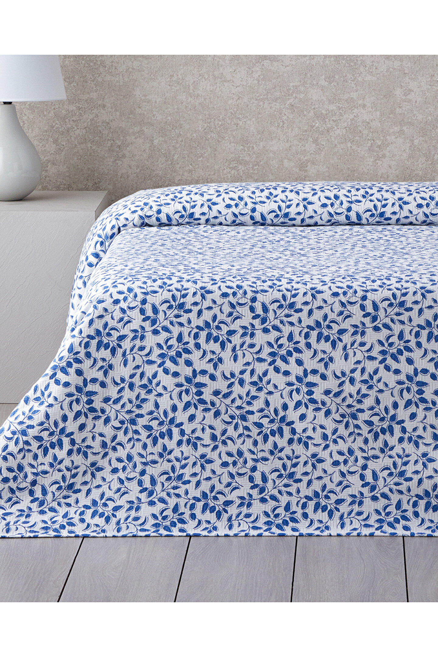 English Home Leaf Harmony Baskılı Pamuklu Çift Kişilik Pike 200x220 cm Lacivert