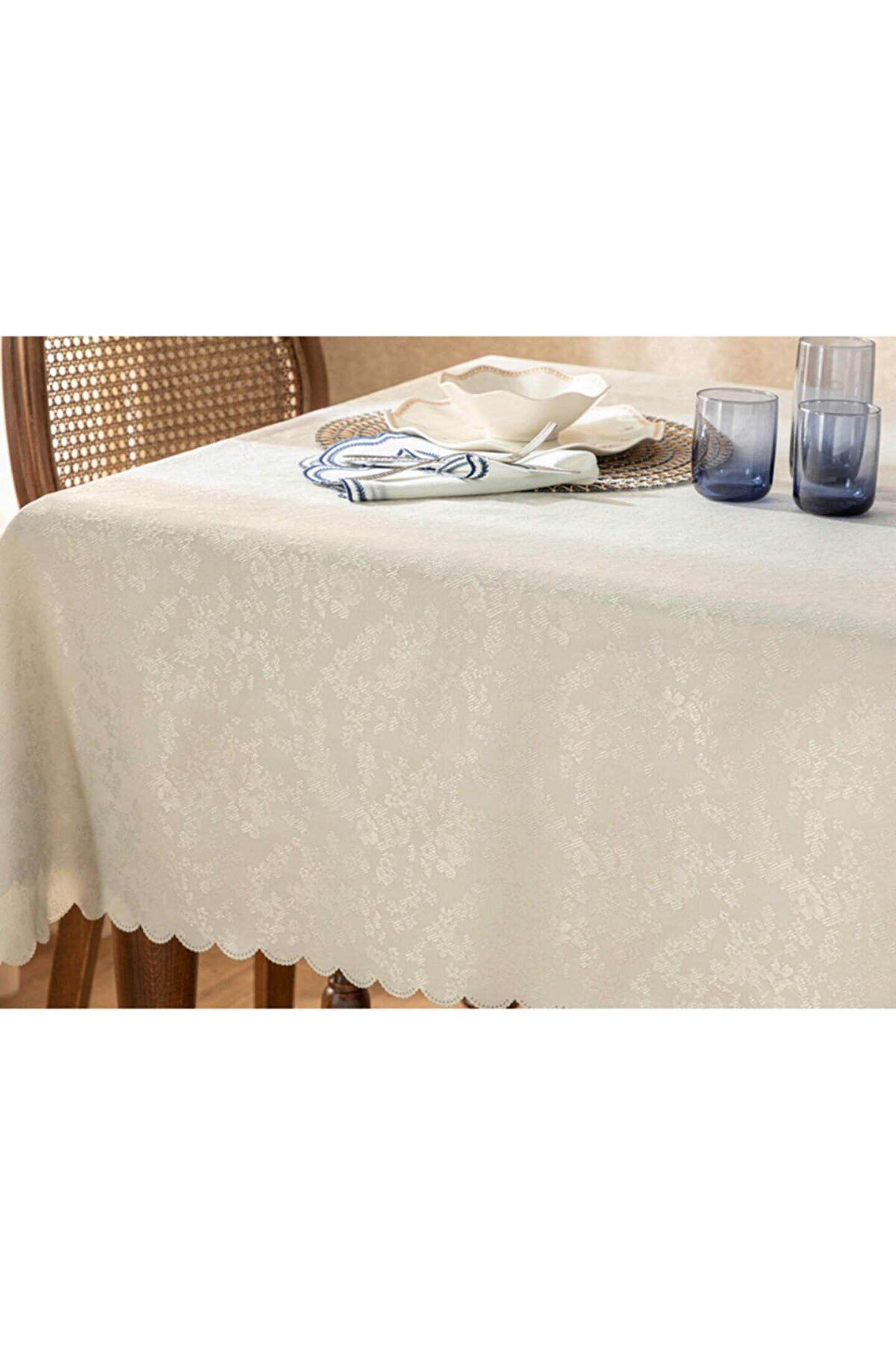 Polyester kumaştan üretilmiş olup, dayanıklılığı ve kolay temizlenebilir yapısıyla öne çıkar; 150x200 cm boyutlarındaki dikdörtgen şekli, geniş masa yüzeyleri için ideal bir örtü seçeneği sunar; Type 3 yıkama talimatına uygun şekilde kolayca temizlenebilir; böylece hijyenik bir kullanım sağlar;
