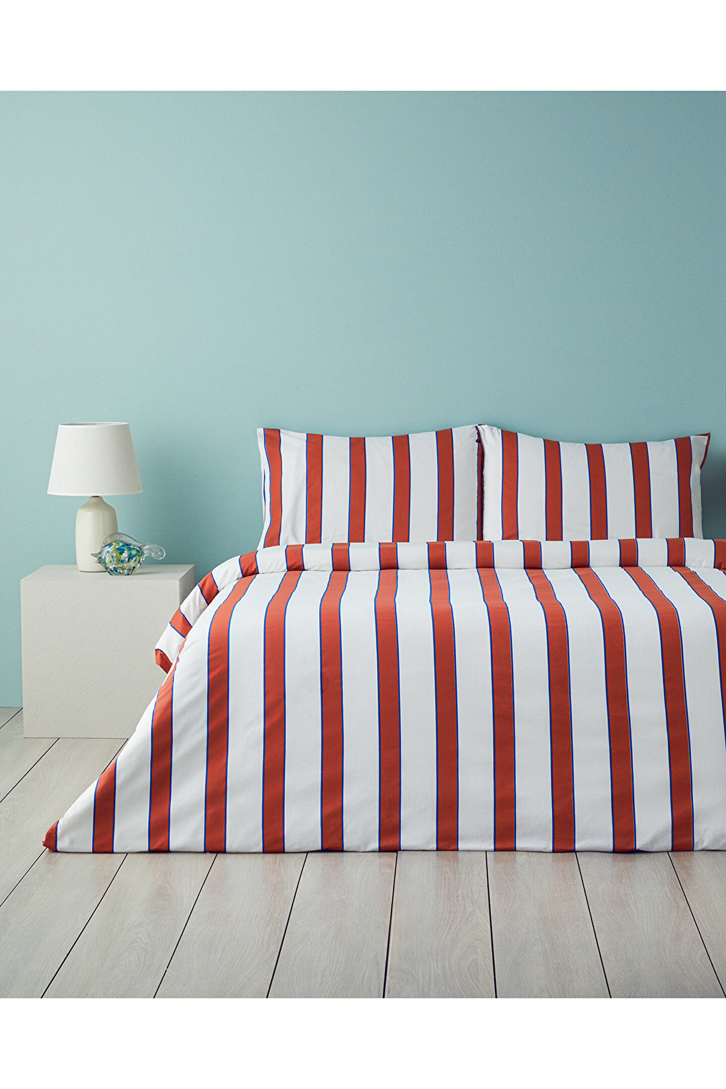 English Home Marine Stripe Çift Kişilik Nevresim Seti Lacivert-Turuncu