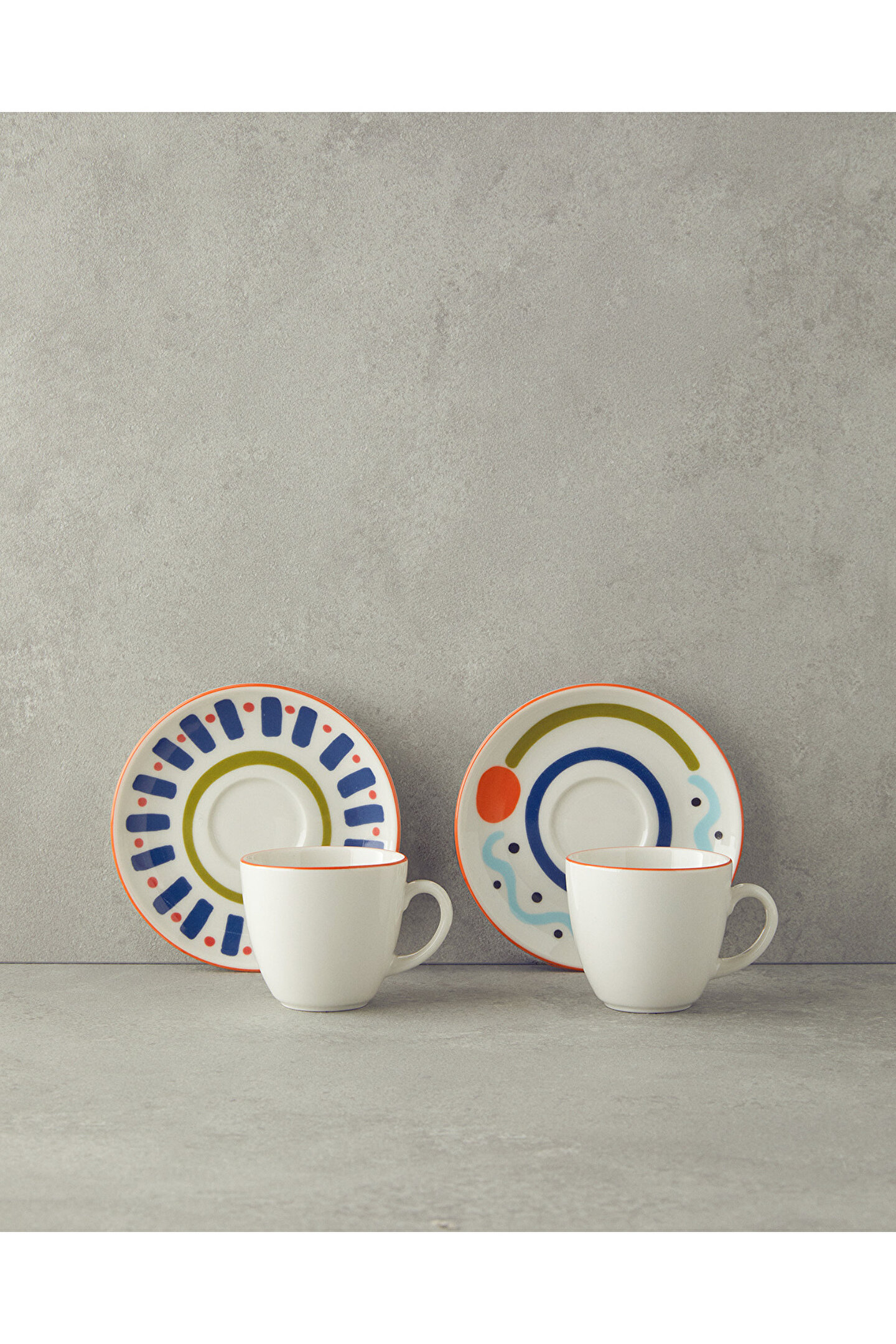 Mixed Lines Porselen Kahve Fincan Takımı Renkli - Modern tasarımıyla dikkat çeken Mixed Lines porselen kahve fincan takımı, 2 kişilik kullanım için idealdir.; - Her bir fincan 90 ml hacmiyle kahve keyfinizi mükemmel bir şekilde tamamlar.; - Renkli desenleriyle göz alıcı bir görünüm sunan bu set, mutfak dekorasyonunuza şıklık katar.; - Yüksek kaliteli porselen malzemesi sayesinde uzun ömürlü kullanım vaat eder.; - 4 parçadan oluşan set, hem şık hem de işlevsel bir kahve deneyimi için tasarlanmıştır.; - Ürünün bakım talimatlarına dikkat ederek kullanım ömrünü uzatabilirsiniz.