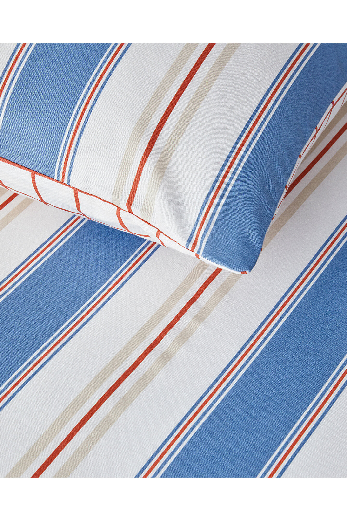 Yumuşak dokunuşuyla konforlu bir uyku deneyimi sunan pamuklu kumaştan üretilmiştir.; Mavinin huzur veren tonlarıyla modern ve şık çizgili deseniyle odanıza estetik bir görünüm kazandırır.; Çift kişilik boyutuyla geniş ve ferah bir uyum sağlar, çiftler için idealdir.; Yüksek kaliteli malzemeler kullanılarak üretilmiş olup uzun süreli kullanım için dayanıklıdır.; Kolay bakım avantajıyla pratik kullanım sunar; leke tutmaz özelliği sayesinde temizliği kolaydır.;