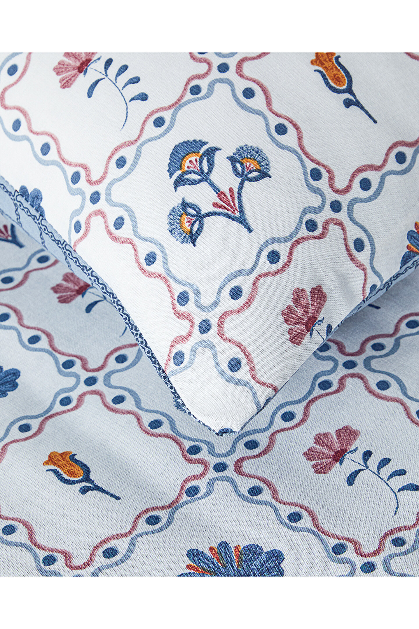 English Home Ornate Fancy Pamuklu Tek Kişilik Nevresim Seti 160x220 cm Mavi