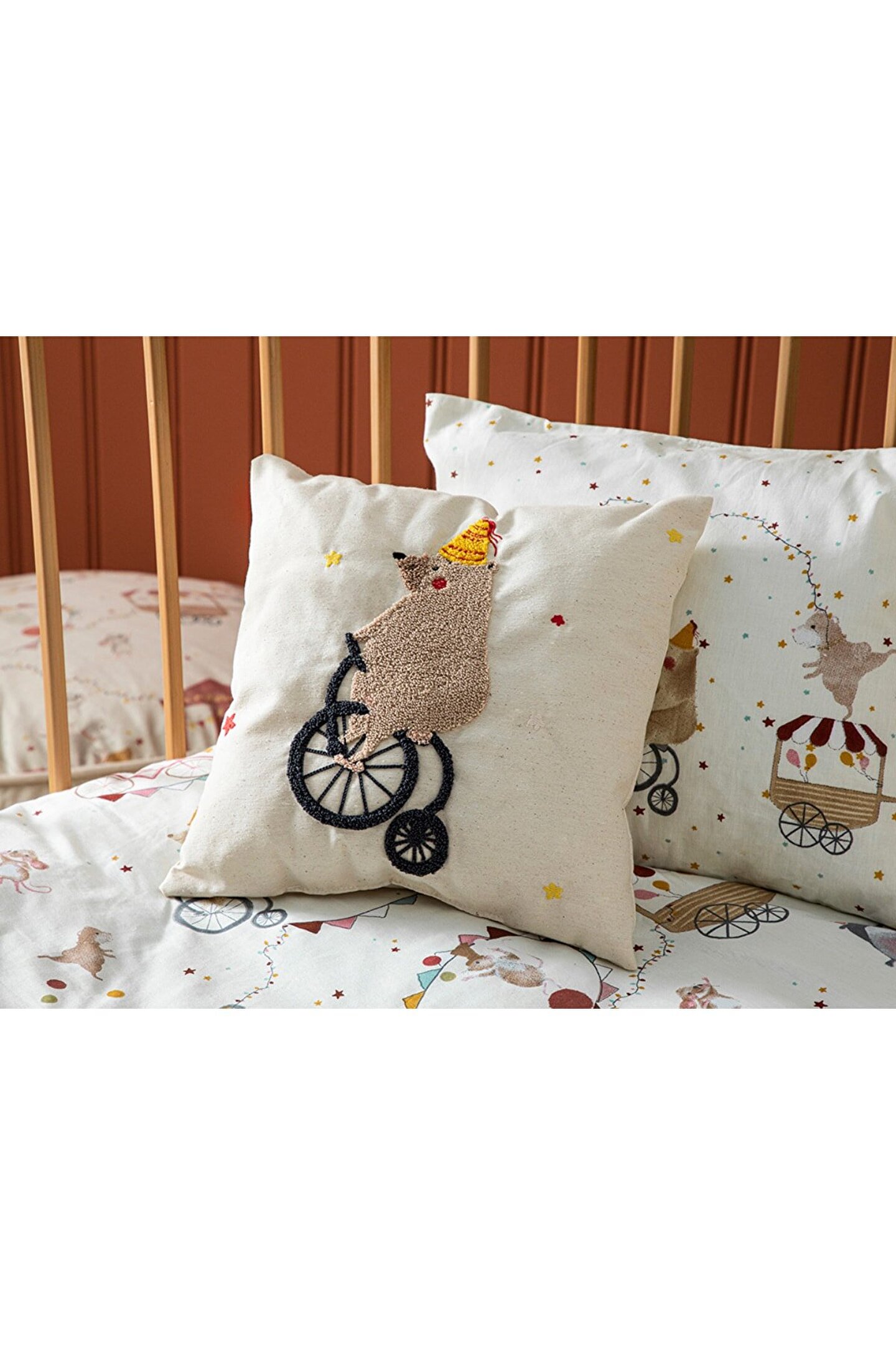 Tek parça olarak sunulan bu kırlent kılıfı, dekoratif bir dokunuş katmak için idealdir; %95 pamuk ve %5 polyester içeriği ile yumuşak bir dokunuş sunar ve konforlu bir kullanım sağlar; Kolay bakım imkanı sunan Type 3 yıkama talimatına uygun şekilde temizlenebilir; böylece hijyenik ve taze kalır;