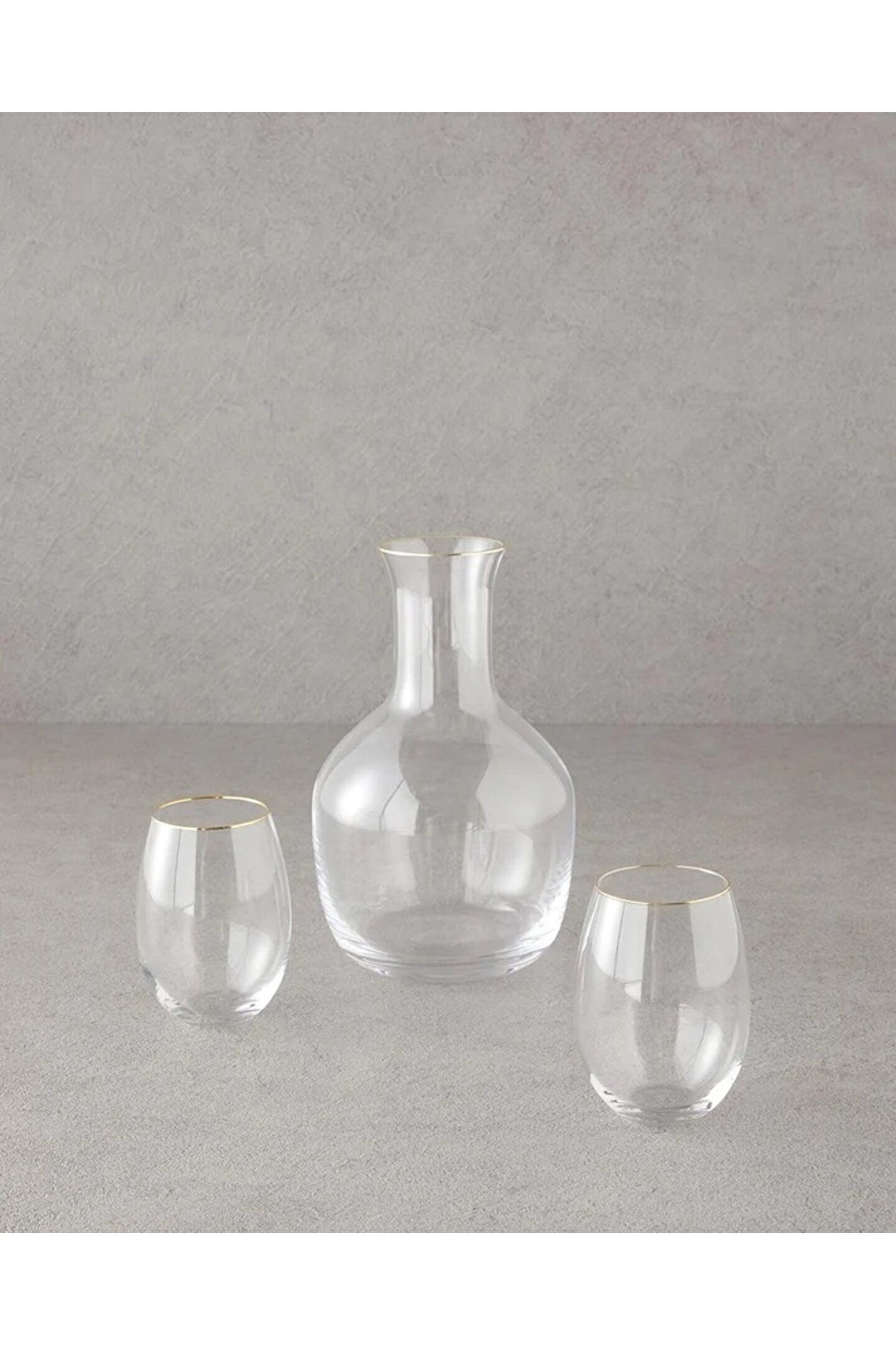 - Şık ve modern tasarımıyla dikkat çeken Starry styl? 3 parça karaf seti, mutfak dekorasyonunuza zarif bir dokunuş ekler; - 350 ml ve 1800 ml kapasiteli cam sürahiler, hem küçük hem de büyük içeceklerinizi rahatlıkla servis etmenize olanak tanır; - Yüksek kaliteli cam materyali sayesinde dayanıklılık ve uzun ömürlü kullanım sunar; - Altın rengi detaylarıyla sofistike bir görünüm sergileyen bu karaf seti, sofralarınıza lüks bir hava katar;