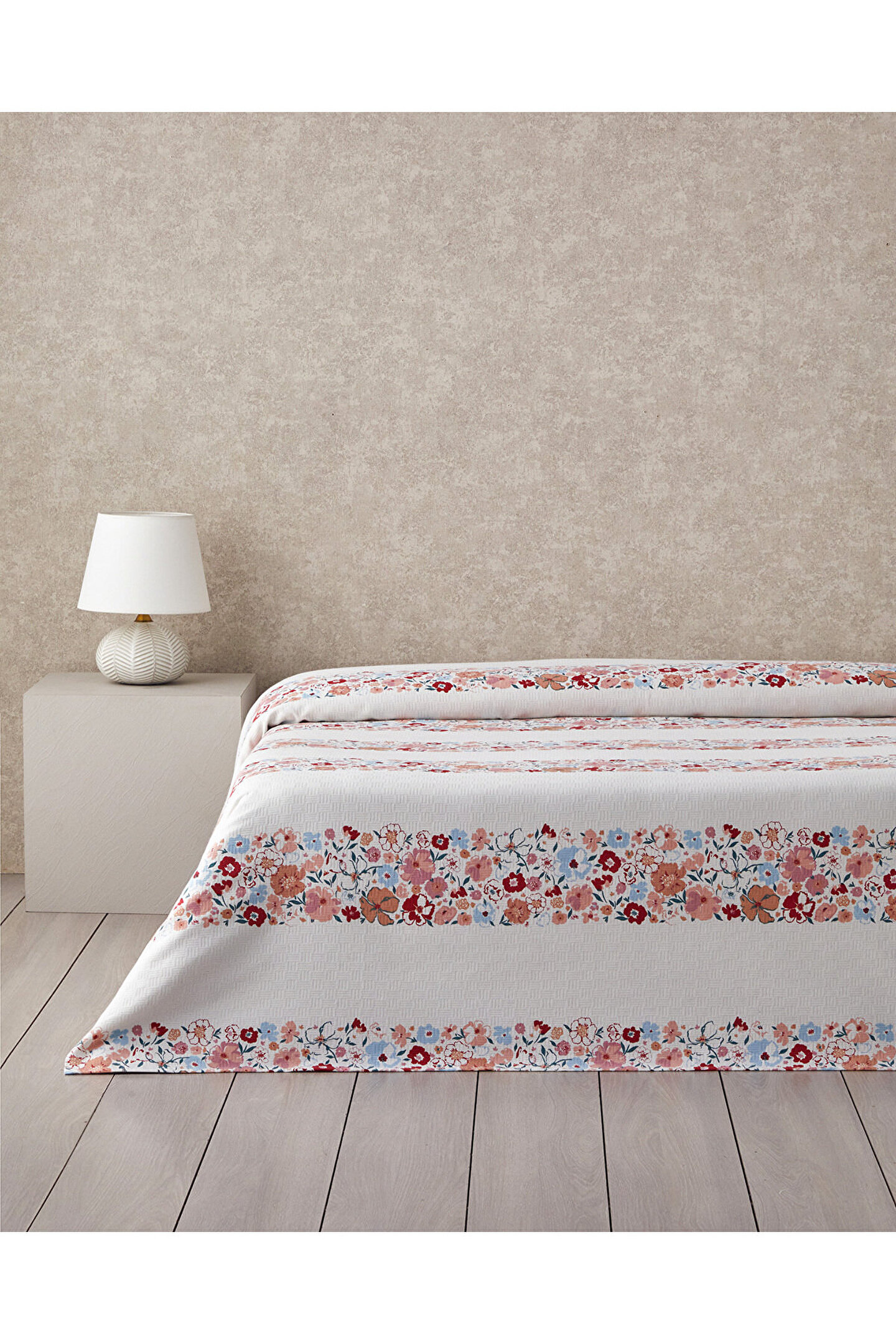 Vintage Floral Baskılı Pamuklu Tek Kişilik Pike 150x220 cm Somon