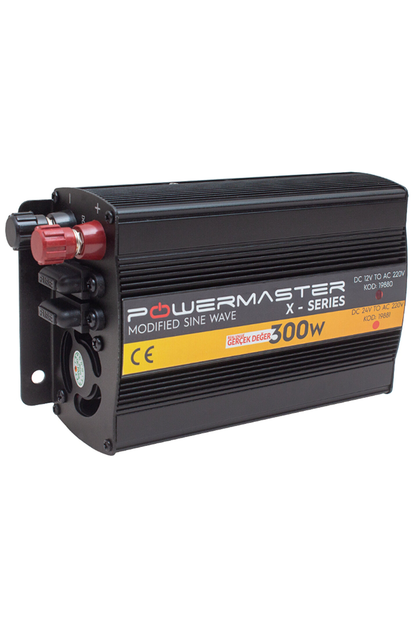 Powermaster 12-220V 12V 300W Modified Sinus İnverter PWR300-12 Özellikleri Teknik Özellikler Modeli: PWR300-12 ; Ürün kodu: 19880 ; Tanım: Modified sinus invertör ; Voltaj: 12 Volt ; Gerçek değer: 300 Watt ;