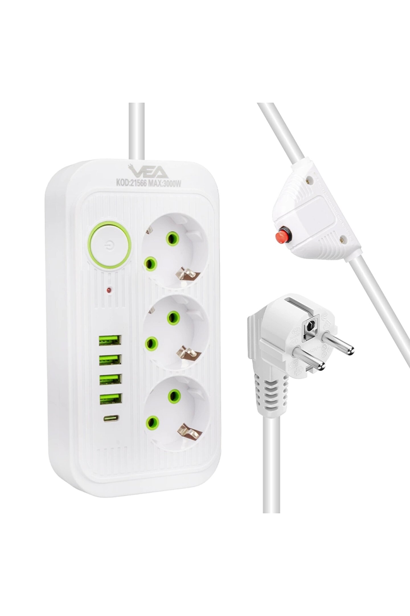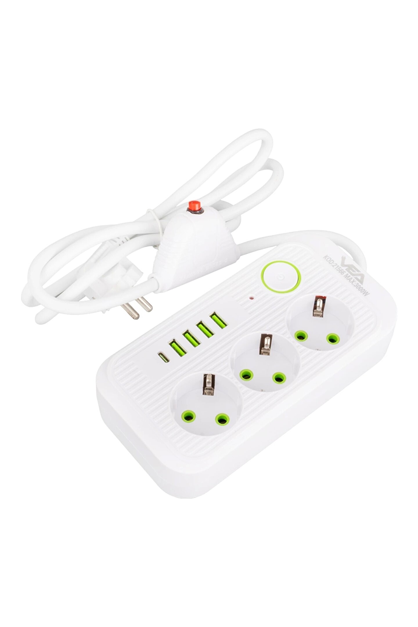 Epilons Vea Va-21566 3lü 1.5 Metre Kablolu 4 Usbli+ Type-c Beyaz Akım Korumalı Priz