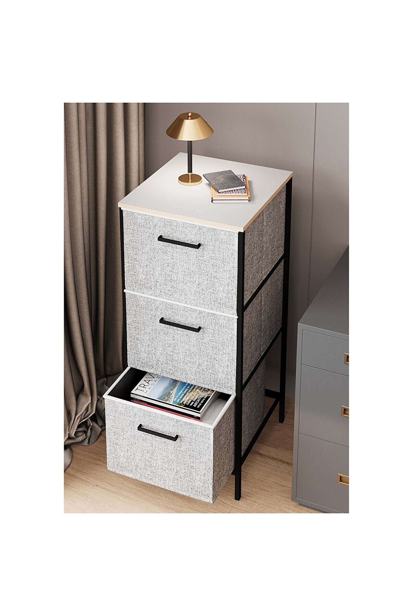 eportatif 3 Çekmeceli Çok Amaçlı Dolap Büyük Boy Komodin Sehpa