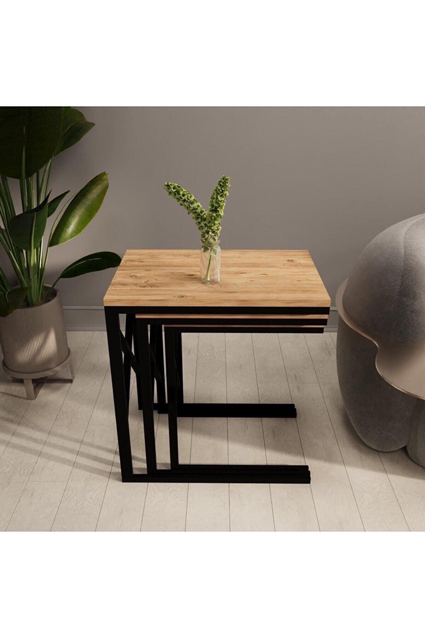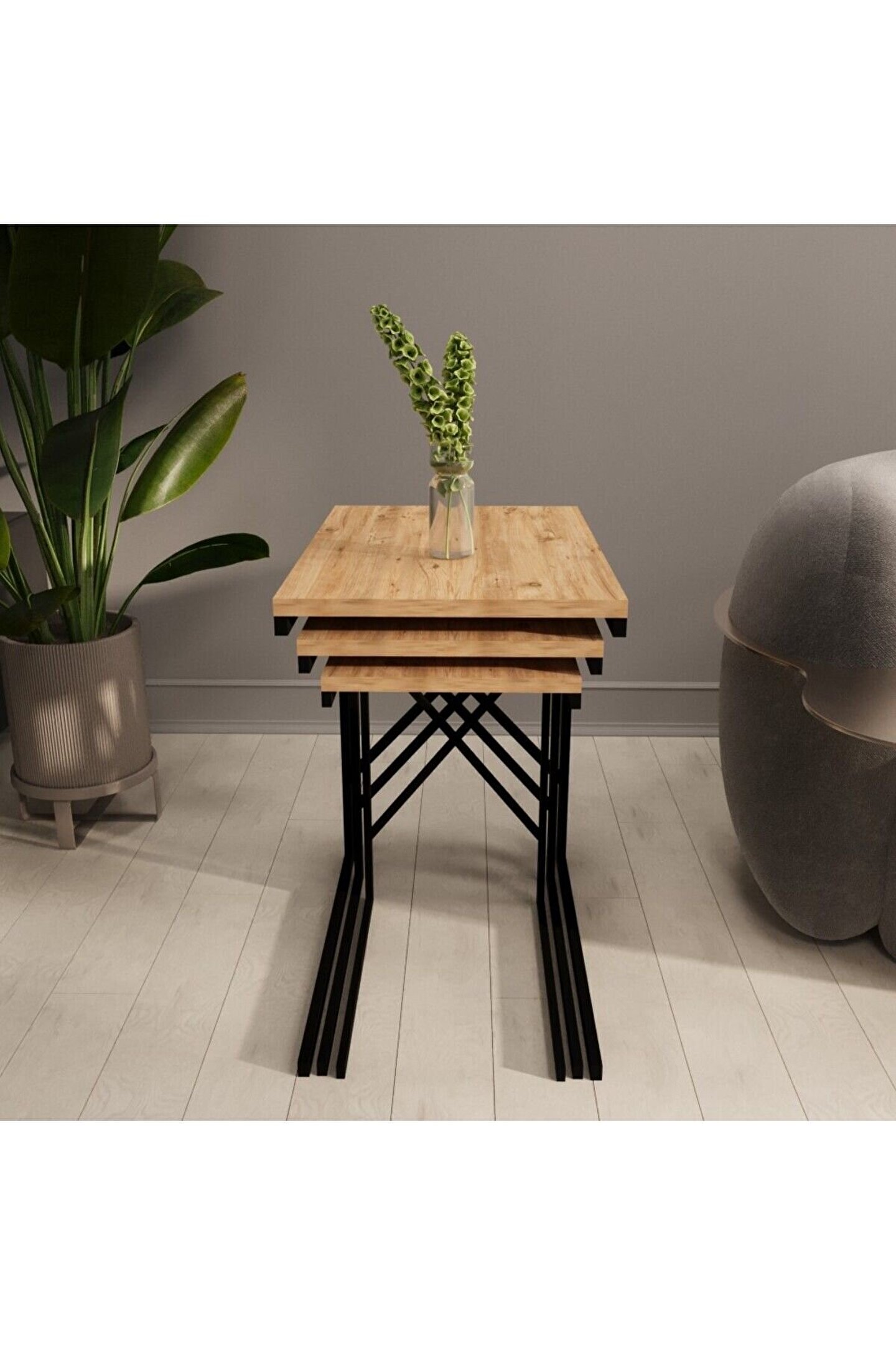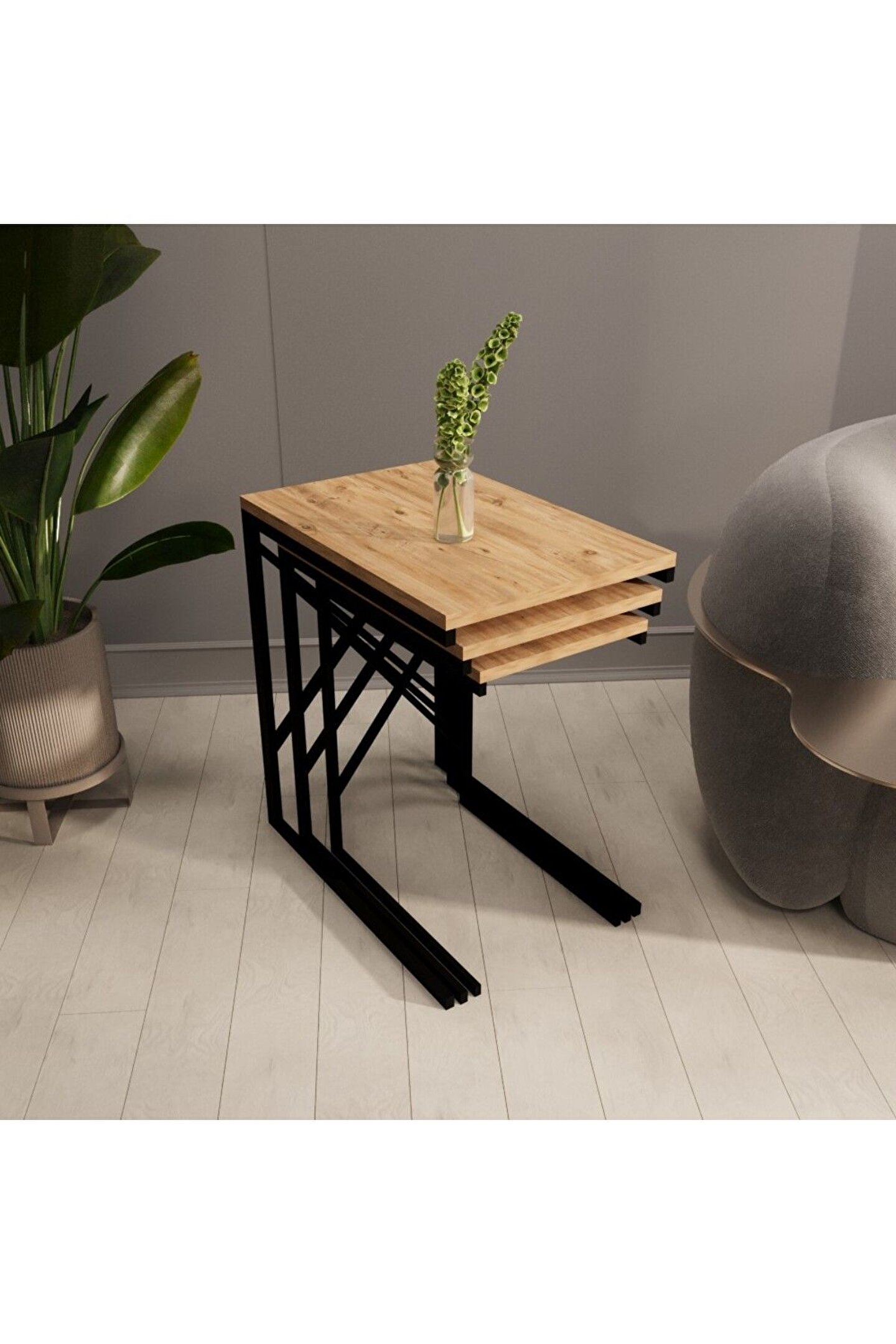 eportatif 3 lü Zigon Sehpa Metal Dar Zigon Sehpa Atlantik Çam 1293