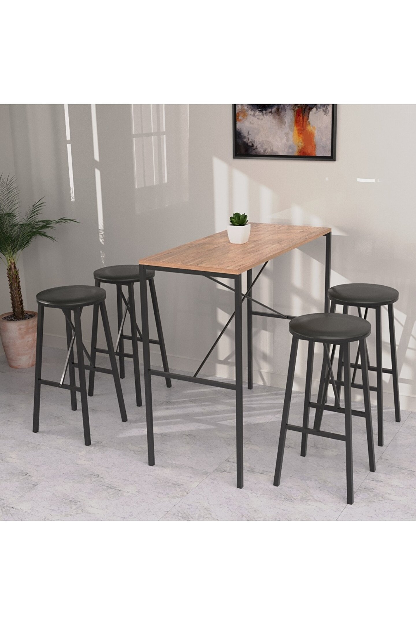 Bar masası: Masa ebatları: Tabla ebatları: 45 cm x 100 cm Yükseklik : 92 cm Sağlam ve dayanıklı yapıdadır. ; Malzeme: Metal profil + Sunta lam tabla Dış mekana uygun değildir. ; Bar Tabure: Yükseklik: 67 cm Oturma alanı: 30 cm x 30 cm Ürün demonte gelmektedir, kurulumu basittir. ; Oturma alanı masif ahşaptır. ; Ayak kısımları metal profildir. ; Maks. ; kaldırma kapasitesi 120 kg'dır. ; Ev eğlencelerinizi daha özel hale getirecek bar masa takımı ile evinizde unutulmaz anlar yaşayın! Hemen sipariş vermek için acele edin!;