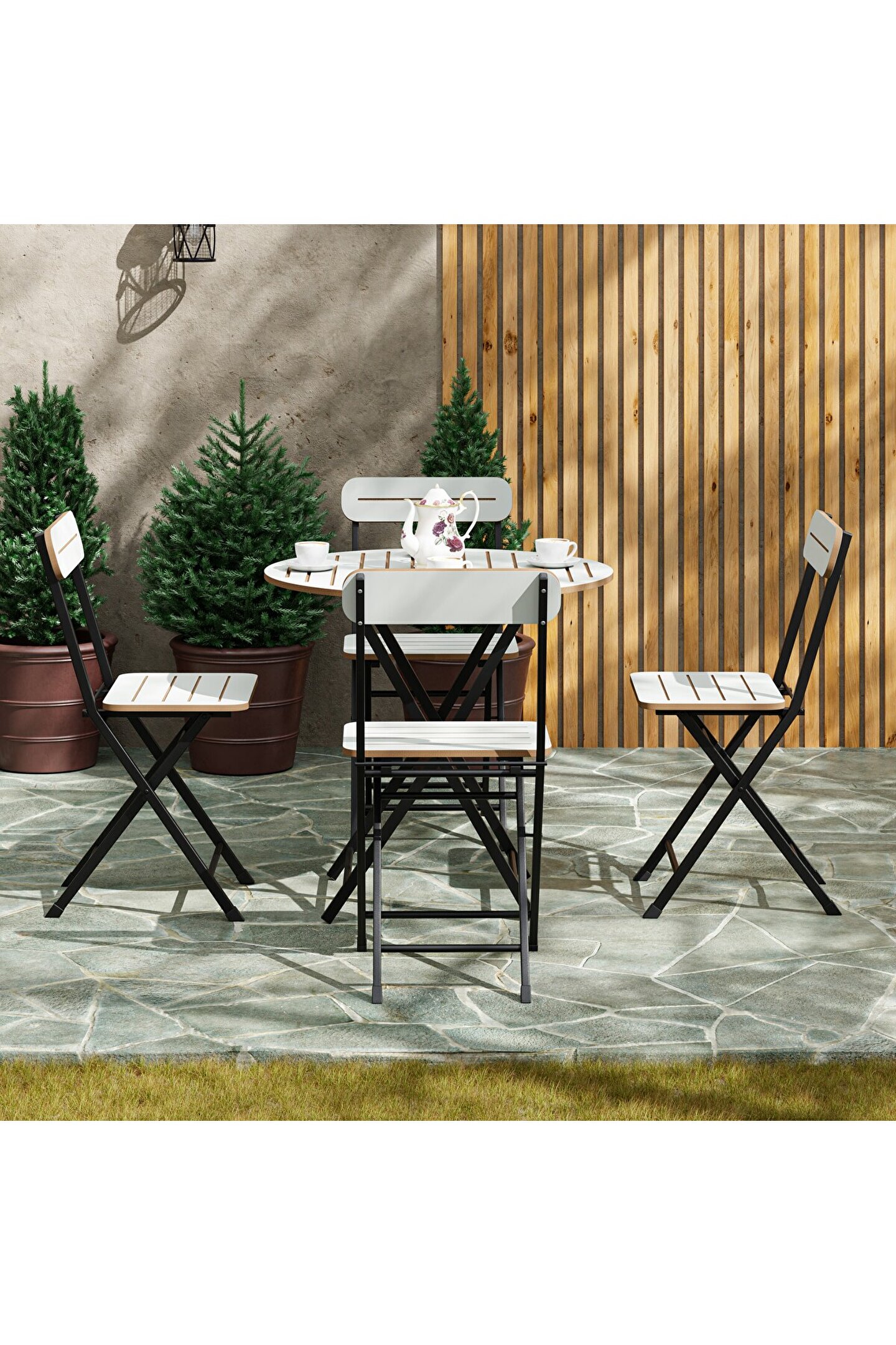 4 Kişilik Yuvarlak Bistro Takım Bahçe Mutfak Masa Sandalye Beyaz , rustik ve doğal tasarımı ile her türlü dış mekan dekorasyonuna kolayca adapte olur. Dış mekanlara huzurlu ve doğal bir atmosfer katar, bu da seti sadece fonksiyonel değil, aynı zamanda dekoratif bir mobilya parçası haline getirir.