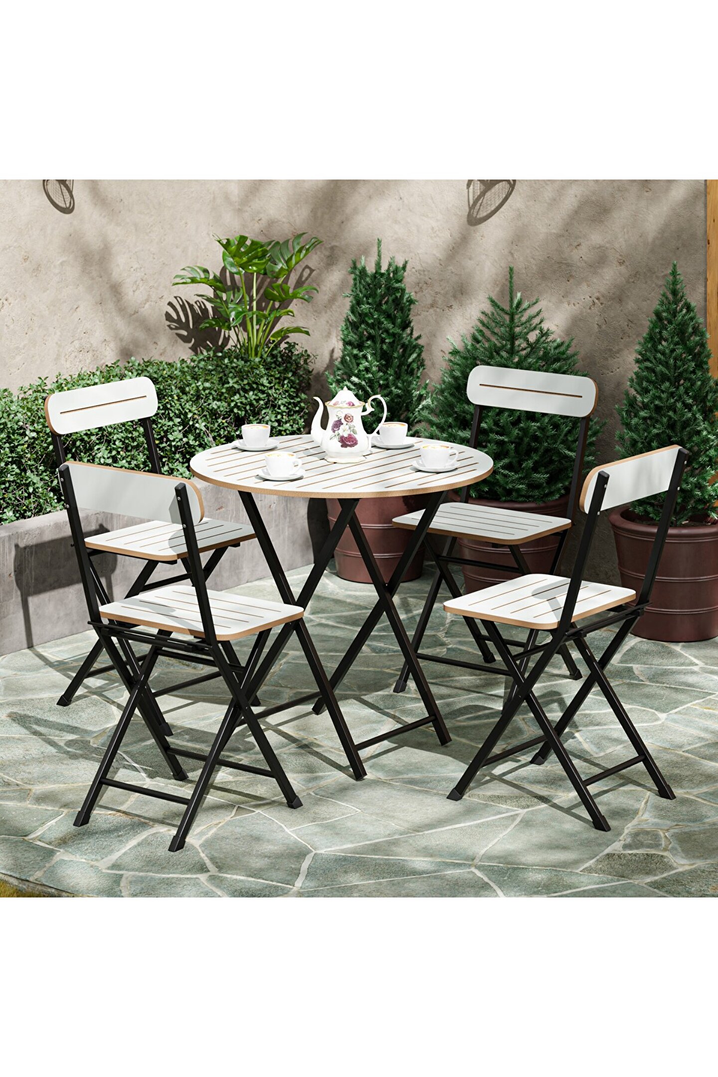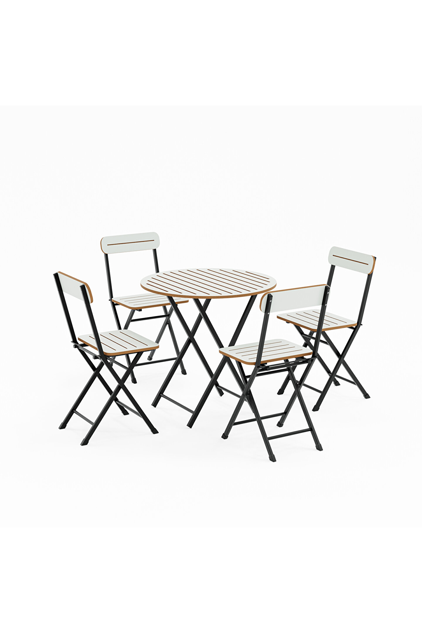 eportatif 4 Kişilik Yuvarlak Bistro Takım Bahçe Mutfak Masa Sandalye Beyaz 1501