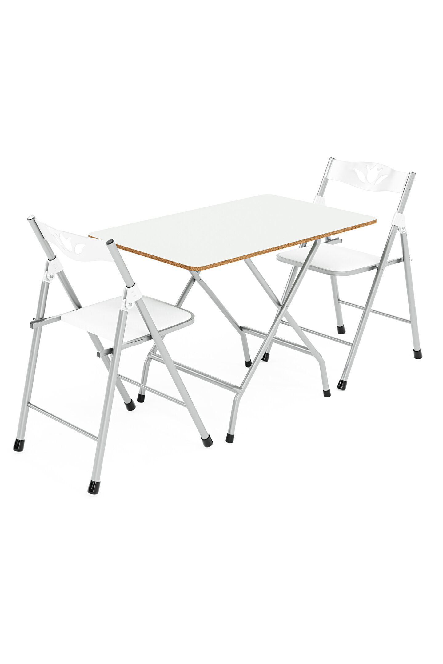 eportatif 50x80 Beyaz Katlanır Masa Ve 2 Adet Sandalye Seti 1130